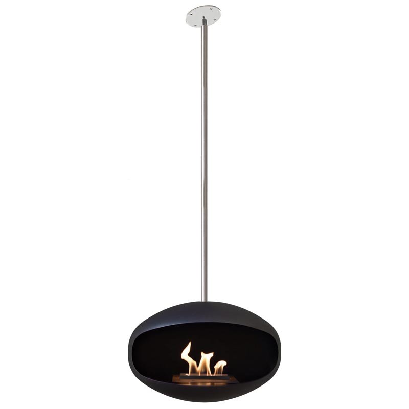 - Biokominek Cocoon Aeris Hanging Angled (Black) z rurą mocującą (Stainless Steel) o maksymalnej długości 142 cm