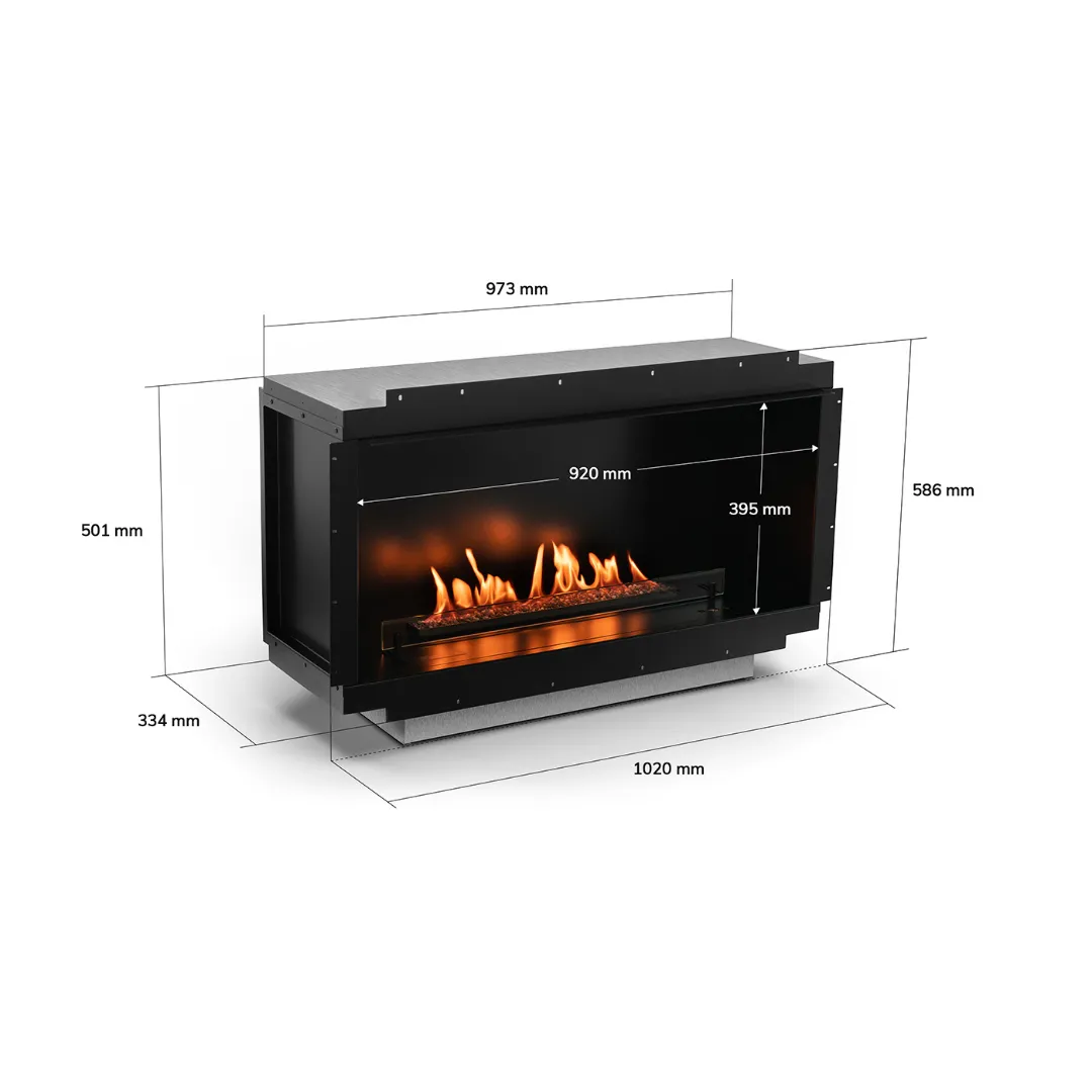 Neo Fireplace można umieścić w kilku rodzajach zabudowy, ogień może być widoczny zarówno z jednej, jak i z trzech stron urządzenia.