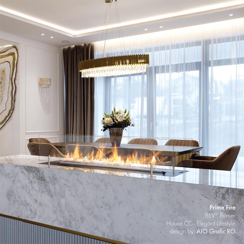 Prime Fire można umieścić w wielu rodzajach zabudowy, ogień może być widoczny zarówno z jednej, jak i ze wszystkich stron urządzenia. Przy wyborze montażu Prime Fire typu wyspa, ścianka działowa i tunel stabilne palenie się płomienia należy zabezpieczyć montując dodatkowe panele szklane po obu stronach paleniska.