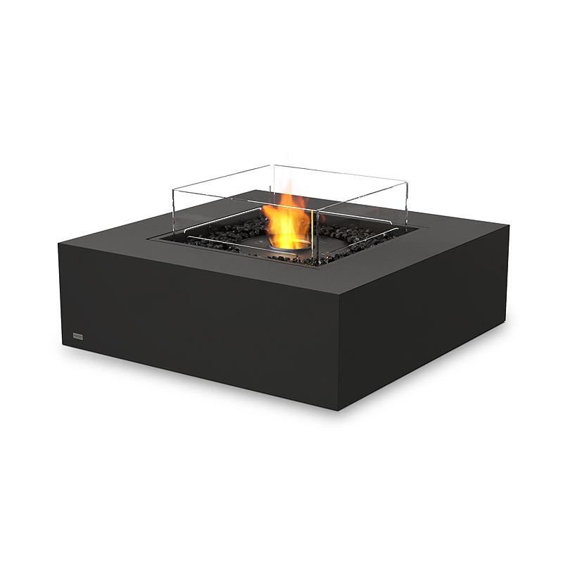 Base 40 BK Graphite z szybą to połączenie najwyższej jakości materiałów w naturalnych odcieniach z industrialną formą. To stolik kawowy i palenisko w jednym produkcie. Obudowa urządzenia wykonana jest z kompozytu betonowego Fluid™ Concrete. Materiał ten charakteryzuje się wysoką odpornością na działania atmosferyczne i uszkodzenia mechaniczne. Palenisko kominka, wykonane z najwyższej jakości stali nierdzewnej (gatunek 304), a wykończone czarną powłoką ceramiczną (górna powierzchnia), wypełnione jest wysoce absorbującymi włóknami ceramicznymi, które sprawiają, że żaden wstrząs, ani przewrócenie produktu nie spowoduje rozlania się paliwa. Szklany klosz stabilizuje palenie się płomienia, a odbijające się w nim refleksy ognia sprawiają, że płomień wydaje się bardziej przestrzenny i jeszcze piękniej rozświetla wieczory. Biokominek można użytkować zarówno wewnątrz pomieszczeń, jak i w warunkach zewnętrznych.