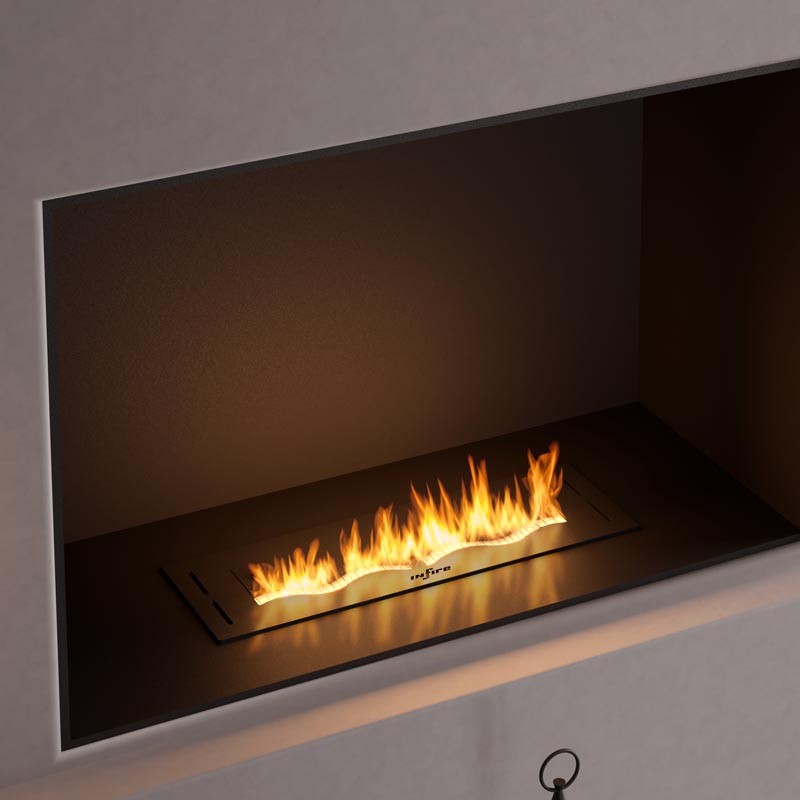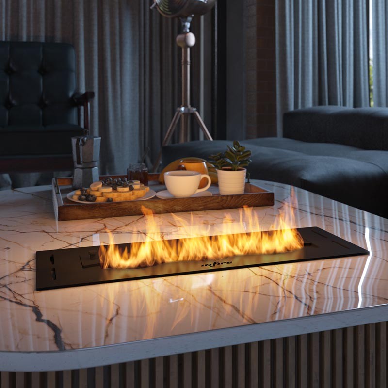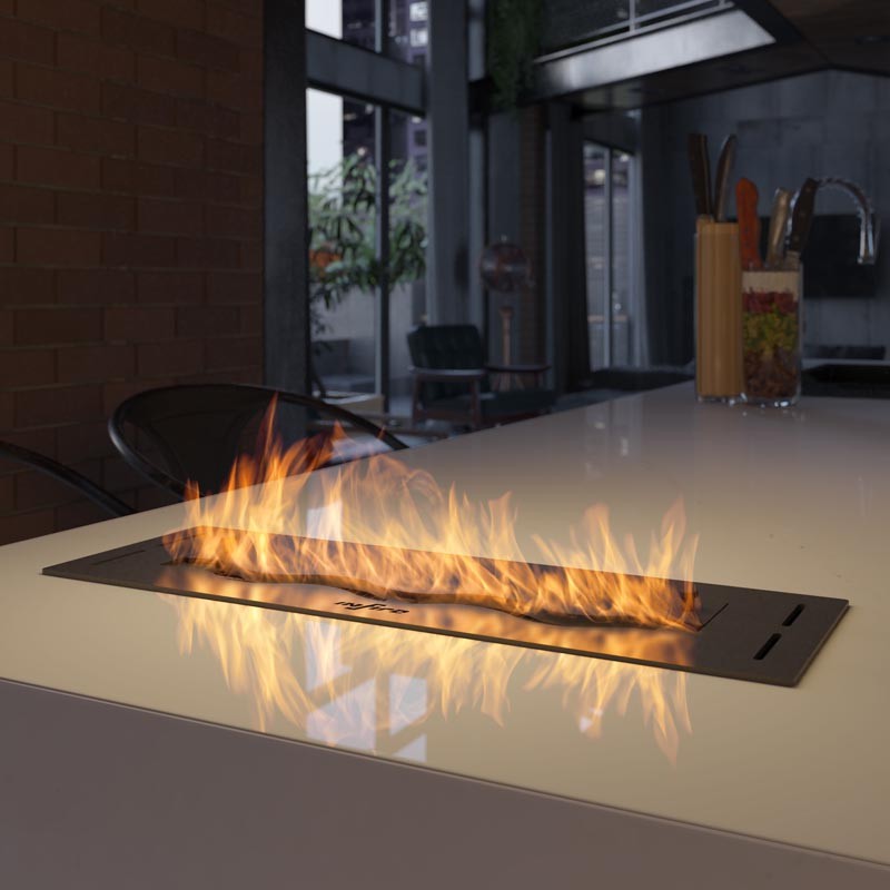 Black Burner 500 zapewnia wiele możliwości aranżacyjnych. Palenisko wystarczy wstawić w przygotowany otwór, przy czym nie może to być otwór w materiałach łatwopalnych ani wrażliwych na wysokie temperatury. Należy uwzględnić również, że ciepło oddawane jest nad płomień, stąd nad paleniskiem muszą znajdować się również materiały znoszące temperatury do 100 °C i odporne na działanie pary wodnej. Jeżeli planowana jest zabudowa nad ogniem to należy zostawić min. 40-50 cm odstępu nad paleniskiem tak, aby płomień miał miejsce na swobodne palenie się.