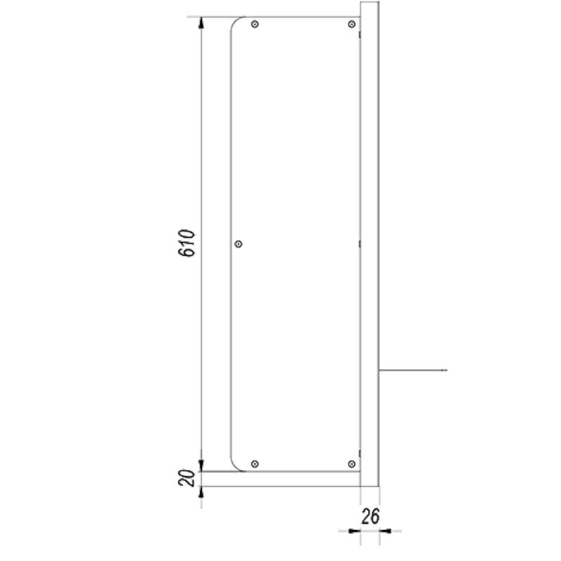 - Szeroka, wysunięta rama o ciekawej konstrukcji zakrywająca brzegi otworu w zabudowie