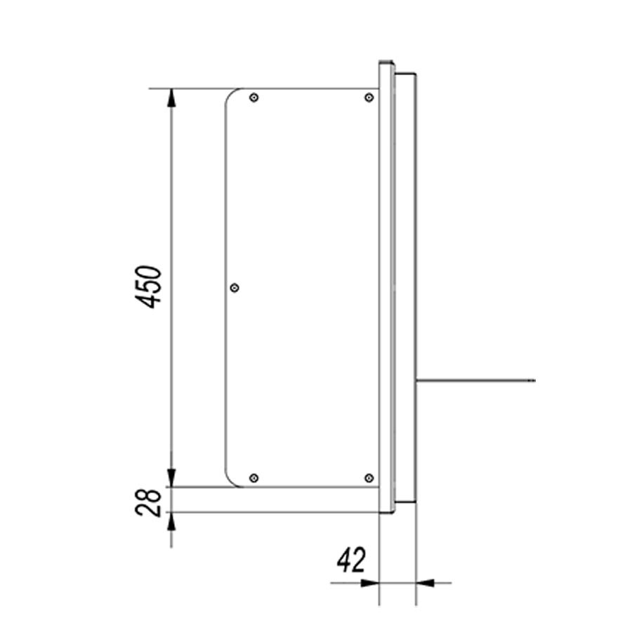 - Szeroka, wysunięta rama o fazowanej konstrukcji zakrywająca brzegi otworu w zabudowie