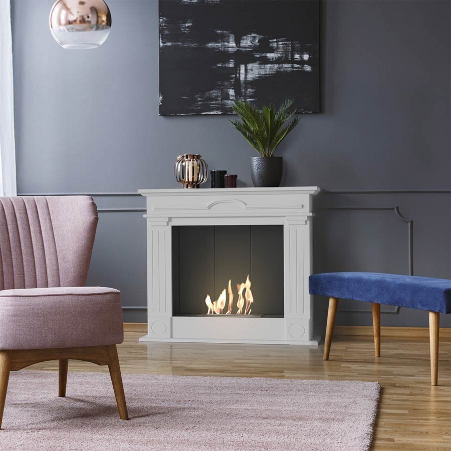 December P Biały to biokominek stylizowany na angielską modę o prostej i eleganckiej formie. Dzięki nowoczesnej interpretacji klasycznych kształtów doskonale wkomponuje się w każdy rodzaj wnętrz. Obudowa biokominka wykonana jest z lakierowanego MDF, a wnętrze ze stali malowanej proszkowo farbą termoodporną na kolor czarny półmat. Biokominek wyposażony jest w palnik z wycięciem w kształcie linii. Najwyższą jakość wykonania potwierdza uzyskanie przez producenta certyfikatu ISO 9001:2015, a cały proces produkcji biokominków monitorowany jest przez TÜV Rheinland Polska (urządzenia posiadają niemiecki certyfikat bezpieczeństwa TÜV).