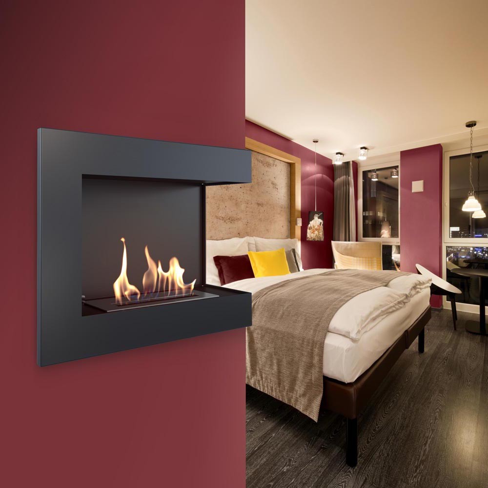 Delta P 600 to model otwarty z prawej strony. Dzięki wysuniętym poza korpus brzegom ramy nie trzeba się martwić o perfekcyjne wykończenie otworu pod urządzenie, a sama rama nachodzi głęboko na zabudowę sprawiając, że urządzenie staje się mocnym akcentem dekoracyjnym. Biokominek można doposażyć w szyby ochronne, które podnoszą bezpieczeństwo użytkowania oraz stabilizują palenie się ognia. Prosta, uniwersalna forma oraz solidnie wykonana czarna obudowa odnajdą się idealnie w każdej przestrzeni.