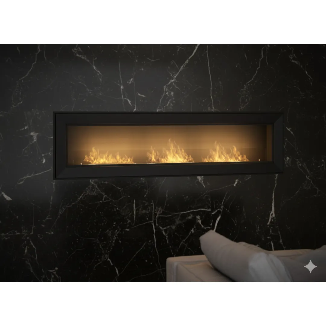 Frame 1800 Czarny z szybą to uniwersalny model, który można zawiesić bezpośrednio na ścianie lub wstawić w przygotowaną wnękę tak, aby rama zlicowała się ze ścianą. Dzięki wysuniętym poza korpus brzegom ramy nie trzeba się martwić o perfekcyjne wykończenie otworu pod urządzenie. Frame 1800 Czarny z szybą wyposażony jest we własny system odpowietrzający, który chroni przed powstaniem ciśnienia pod paleniskiem w przypadku przelania urządzenia. Dodatkową ochronę stanowi również drugi zbiornik pod paleniskiem, który nie pozwoli wylanemu biopaliwu wydostać się poza obrys biokominka. Urządzenie doposażone jest w szybę ochronną, która podnosi bezpieczeństwo użytkowania oraz stabilizuje palenie się ognia. Wyjątkowa, uniwersalna forma oraz pięknie wykończona w połysku, fazowana czarna rama odnajdą się idealnie w każdej przestrzeni.