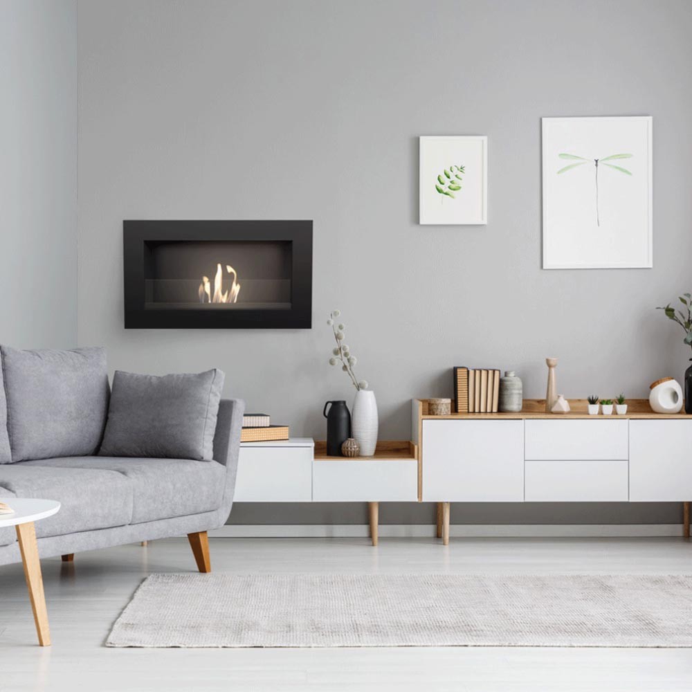 Golf Czarny z szybą to kompaktowy model, który można zawiesić bezpośrednio na ścianie lub wstawić w przygotowaną wnękę tak, aby rama naszła na zabudowę. Dzięki wysuniętym poza korpus brzegom ramy nie trzeba się martwić o perfekcyjne wykończenie otworu pod urządzenie. Biokominek doposażony jest w szybę ochronną, która podnosi bezpieczeństwo użytkowania oraz stabilizują palenie się ognia. Prosta, uniwersalna forma oraz solidnie wykonana czarna obudowa odnajdą się idealnie w każdej przestrzeni.