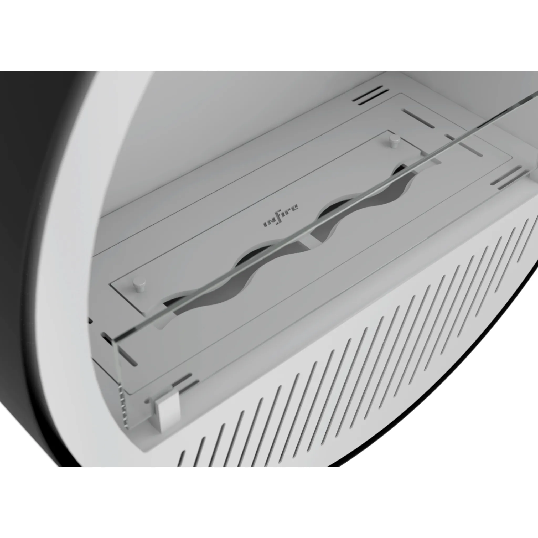 Regulację wysokości płomienia umożliwia przesuwna listwa z uchwytem, dzięki której można precyzyjnie dostosować intensywność ognia. Za pomocą tej samej listwy w prosty sposób wygasza się również płomień. Falisty kształt wnętrza kominka tworzy wrażenie trójwymiarowego, przestrzennego ognia, który wprowadza do wnętrza wyjątkowy klimat. Wnętrze kominka dostępne jest w kolorze czarnym lub białym, natomiast zewnętrzną obudowę można pomalować na dowolny odcień z palety RAL, co pozwala na pełną personalizację i idealne dopasowanie do charakteru aranżacji.