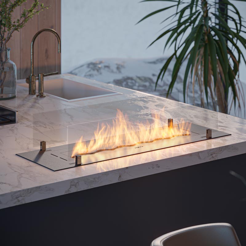 Insert Black 1000 to możliwość wkomponowania majestatycznego ognia w niemalże każdą aranżację. Urządzenie cechuje najwyższy poziom bezpieczeństwa oraz możliwość umieszczenia bezpośrednio w blacie meblowym.