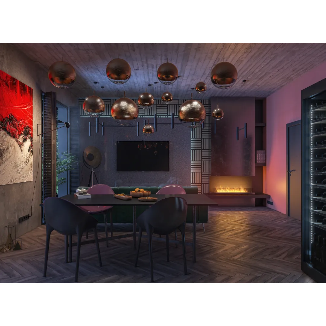 Ten model przeznaczony jest do zabudowy w ścianie. Dzięki możliwości wpasowania go w zabudowę, urządzenie staje się niemal niewidoczne, co pozwala na estetyczne dopasowanie do każdego stylu wnętrza. Montaż w zabudowie zapewnia także wysoki poziom bezpieczeństwa – kominek chroniony jest przed przypadkowym przewróceniem czy uszkodzeniami mechanicznymi, a przestrzeń wokół niego może być odpowiednio wentylowana. Brak widocznych przewodów i elementów montażowych wpływa na estetykę, umożliwiając integrację urządzenia z otoczeniem w sposób harmonijny i nowoczesny.