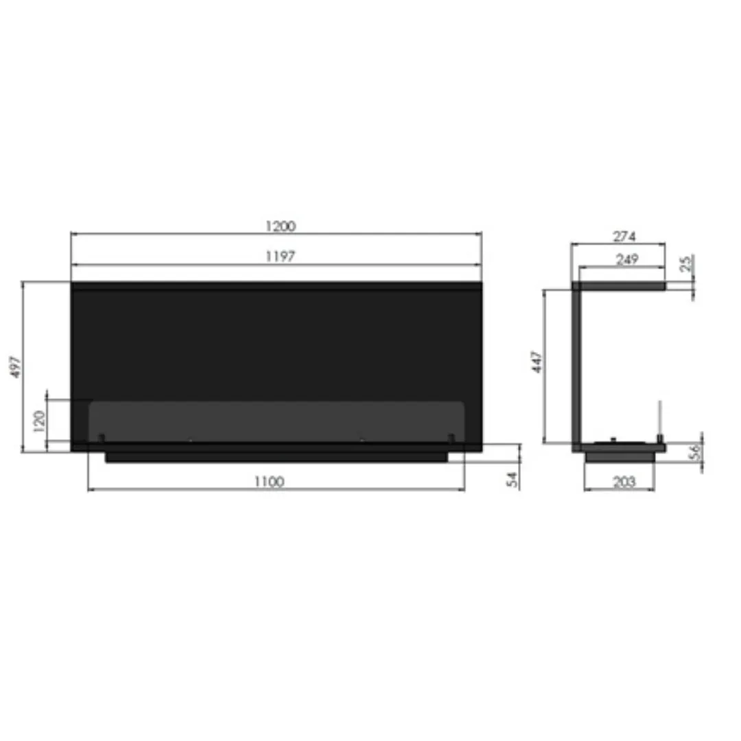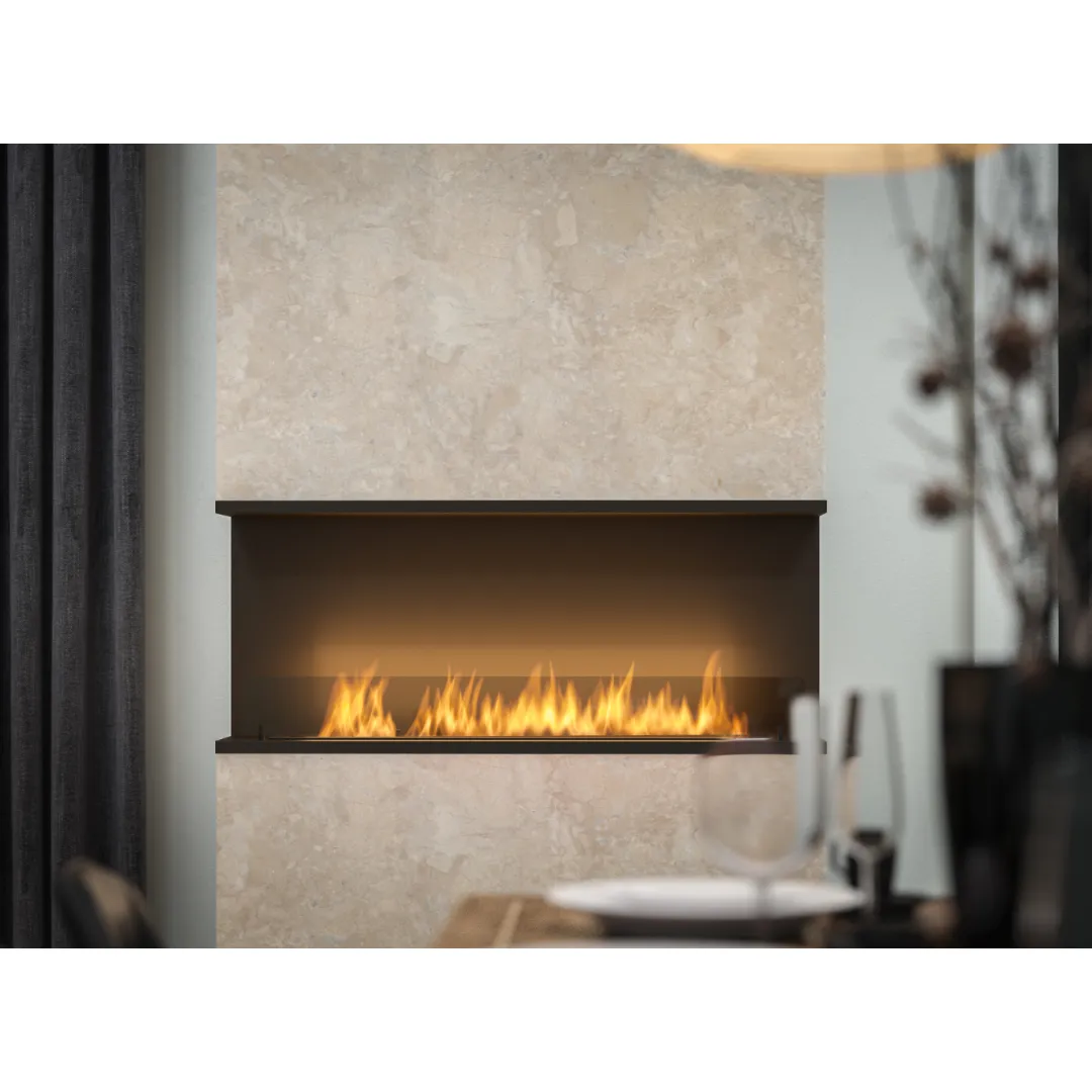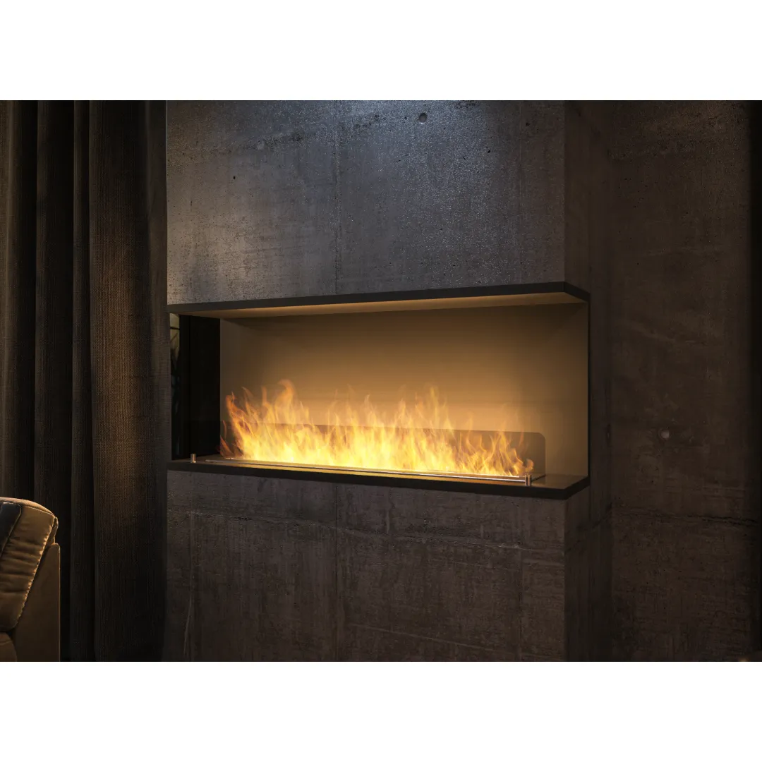 Inside C1200 Vers2 to model otwarty z trzech stron. Dzięki wysuniętym poza korpus brzegom ramy nie trzeba się martwić o perfekcyjne wykończenie otworu pod urządzenie. Inside C1200 VERS2wyposażony jest we własny system odpowietrzający, który chroni przed powstaniem ciśnienia pod paleniskiem w przypadku przelania urządzenia. Dodatkową ochronę stanowi również drugi zbiornik pod paleniskiem, który nie pozwoli wylanemu biopaliwu wydostać się poza obrys biokominka. Standardowo urządzenie wyposażone jest w szybę ochronną, która podnosi bezpieczeństwo użytkowania oraz stabilizuje palenie się ognia. Prosta, uniwersalna forma oraz pięknie wykończona czarna obudowa odnajdą się idealnie w każdej przestrzeni.