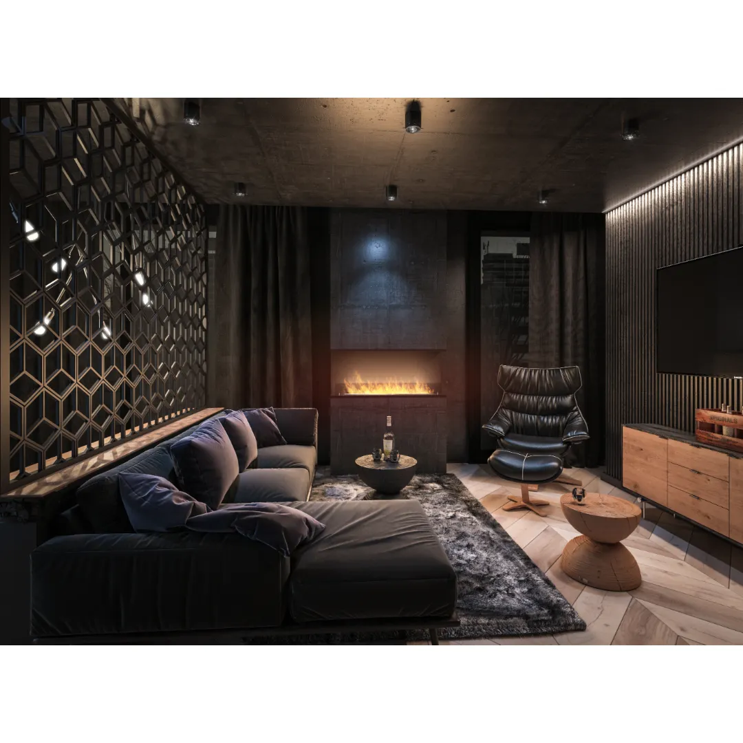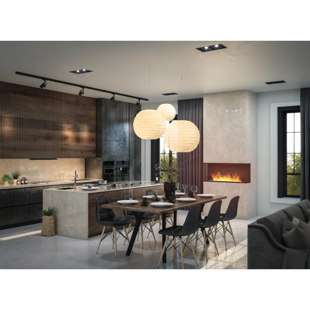 Ten model przeznaczony jest do zabudowy w ścianie. Dzięki możliwości wpasowania go w zabudowę, urządzenie staje się niemal niewidoczne, co pozwala na estetyczne dopasowanie do każdego stylu wnętrza. Montaż w zabudowie zapewnia także wysoki poziom bezpieczeństwa – kominek chroniony jest przed przypadkowym przewróceniem czy uszkodzeniami mechanicznymi, a przestrzeń wokół niego może być odpowiednio wentylowana. Brak widocznych przewodów i elementów montażowych wpływa na estetykę, umożliwiając integrację urządzenia z otoczeniem w sposób harmonijny i nowoczesny.