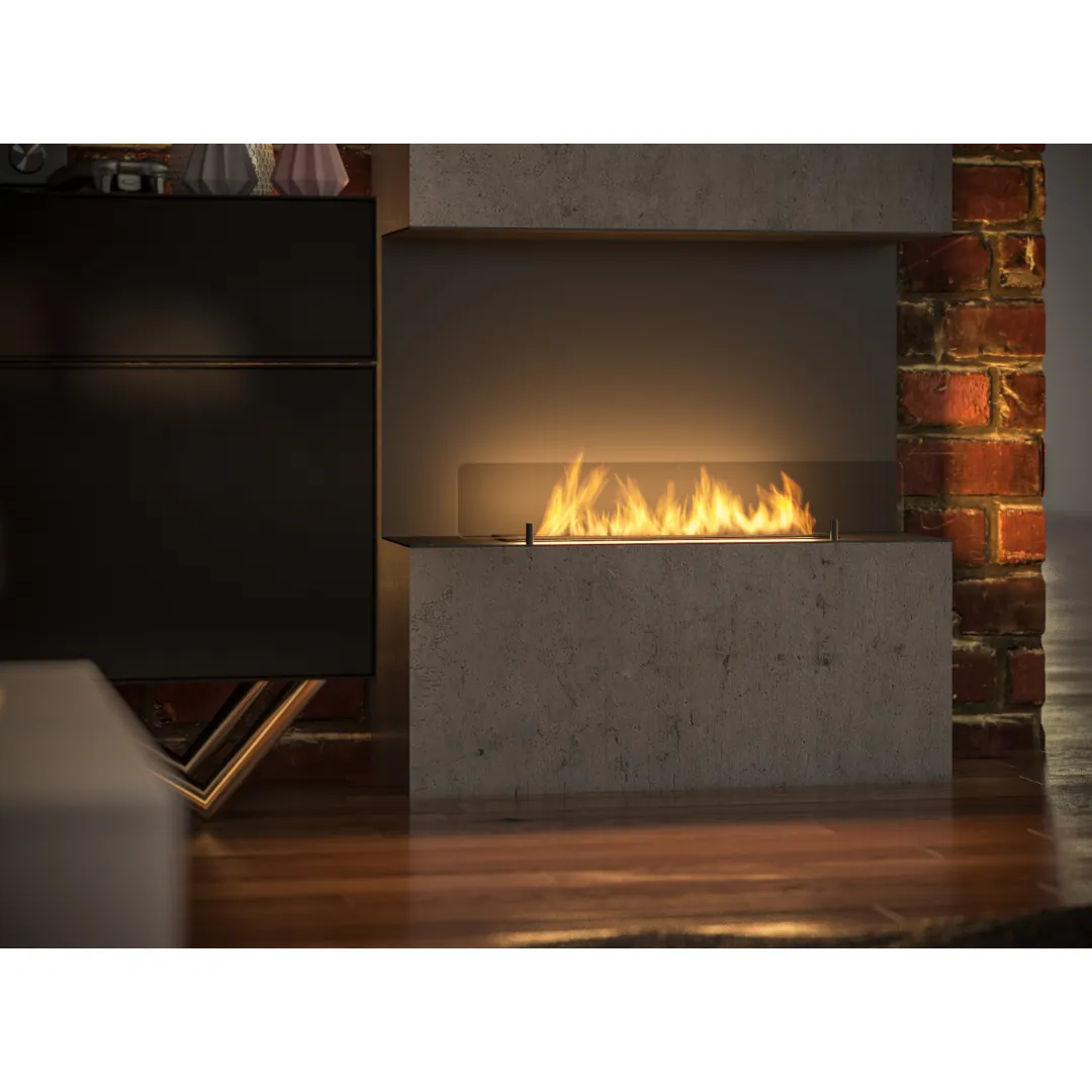 Model Inside C800 Vers1 to kominek otwarty z trzech stron. Dzięki zastosowaniu specjalnej, wzmocnionej stali kotłowej możliwym było uzyskanie najbardziej minimalistycznej formy przy wykorzystaniu tylko jednej warstwy materiału. Kominek wyposażony jest we własny system odpowietrzający, który chroni przed powstaniem ciśnienia pod paleniskiem w przypadku przelania urządzenia. Dodatkową ochronę stanowi również drugi zbiornik pod paleniskiem, który nie pozwoli wylanemu biopaliwu wydostać się poza obrys biokominka. Standardowo urządzenie wyposażone jest w szybę ochronną, która podnosi bezpieczeństwo użytkowania oraz stabilizuje palenie się ognia. Prosta, uniwersalna forma oraz pięknie wykończona czarna obudowa odnajdą się idealnie w każdej przestrzeni.