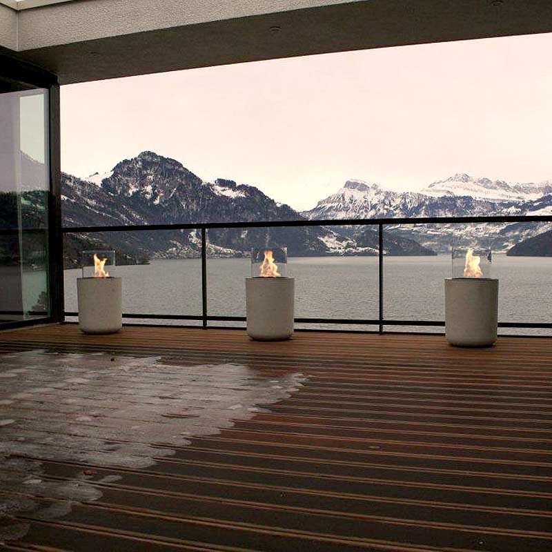 Jar, zaprojektowany przez znanego architekta Christophe’a Pilleta, to połączenie najwyższej jakości materiałów z nowoczesną, industrialną formą, pasujące do każdego współczesnego wnętrza. To kolumnowy, przenośny biokominek, który z powodzeniem można ustawić w dowolnym miejscu jako oryginalny element dekoracyjny, wprowadzający unikalny, romantyczny nastrój. Sprzyja relaksowi i wyciszeniu. Palenisko kominka wypełnione jest wysoce absorbującymi włóknami ceramicznymi, które sprawiają, że żaden wstrząs, ani przewrócenie produktu nie spowoduje rozlania się paliwa. Szklany, cylindryczny klosz stabilizuje palenie się płomienia, a odbijające się w nim refleksy ognia sprawiają, że płomień wydaje się bardziej przestrzenny i jeszcze piękniej rozświetla wieczory. Biokominek można użytkować zarówno wewnątrz pomieszczeń, jak i w warunkach zewnętrznych.