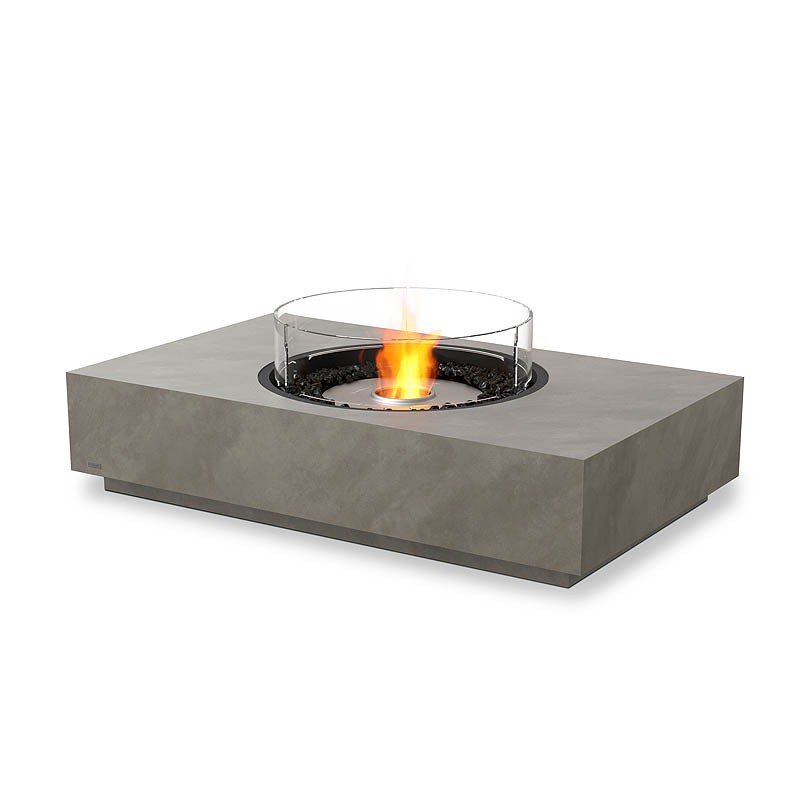 Martini 50 SS Natural z szybą to połączenie najwyższej jakości materiałów w naturalnych odcieniach z industrialną formą. To elegancki, prosty i niezwykle funkcjonalny stół kawowy z ukrytym w blacie, zjawiskowym płomieniem. Obudowa urządzenia wykonana jest z kompozytu betonowego Fluid™ Concrete. Materiał ten charakteryzuje się wysoką odpornością na działania atmosferyczne i uszkodzenia mechaniczne. Palenisko kominka, wykonane z najwyższej jakości stali nierdzewnej (gatunek 304), wypełnione jest wysoce absorbującymi włóknami ceramicznymi, które sprawiają, że żaden wstrząs, ani przewrócenie produktu nie spowoduje rozlania się paliwa. Szklany, cylindryczny klosz stabilizuje palenie się płomienia, a odbijające się w nim refleksy ognia sprawiają, że płomień wydaje się bardziej przestrzenny i jeszcze piękniej rozświetla wieczory. Biokominek można użytkować zarówno wewnątrz pomieszczeń, jak i w warunkach zewnętrznych.