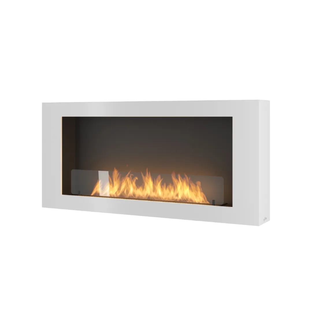 Murall 1200 Biały to uniwersalny kominek na bioetanol dedykowany do zawieszenia bezpośrednio na ścianie bez konieczności wykonania wnęki – kominek zawieszany jest na dwóch kołkach montażowych. Nie można go jednak umieścić na ścianach z płyt wiórowych, meblowych, gipsowych ani na ścianach pokrytych tapetą. kominek wyposażony jest we własny system odpowietrzający, który chroni przed powstaniem ciśnienia pod paleniskiem w przypadku przelania urządzenia. Dodatkową ochronę stanowi również drugi zbiornik pod paleniskiem, który nie pozwoli wylanemu biopaliwu wydostać się poza obrys urządzenia. Standardowo urządzenie wyposażone jest w szybę ochronną, która podnosi bezpieczeństwo użytkowania oraz stabilizuje palenie się ognia. Biokominek posiada również wbudowaną izolację. Konstrukcja kominka, dopracowane detale oraz zabudowane ściany boczne sprawiają, że kominek prezentuje się doskonale z każdej perspektywy.