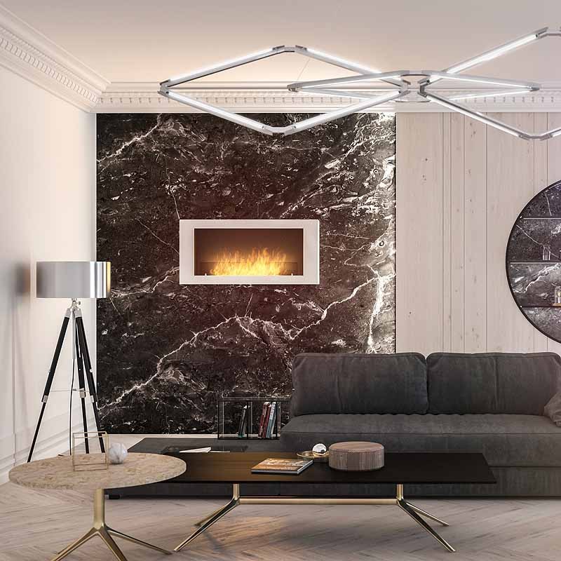 Ten model został zaprojektowany z myślą o łatwym i estetycznym montażu na ścianie. Taka forma instalacji pozwala zaoszczędzić miejsce i podkreślić nowoczesny charakter wnętrza. Kominek tworzy efektowną dekorację ścienną, jednocześnie nie wymagając skomplikowanej zabudowy ani podłączenia do instalacji kominowej.