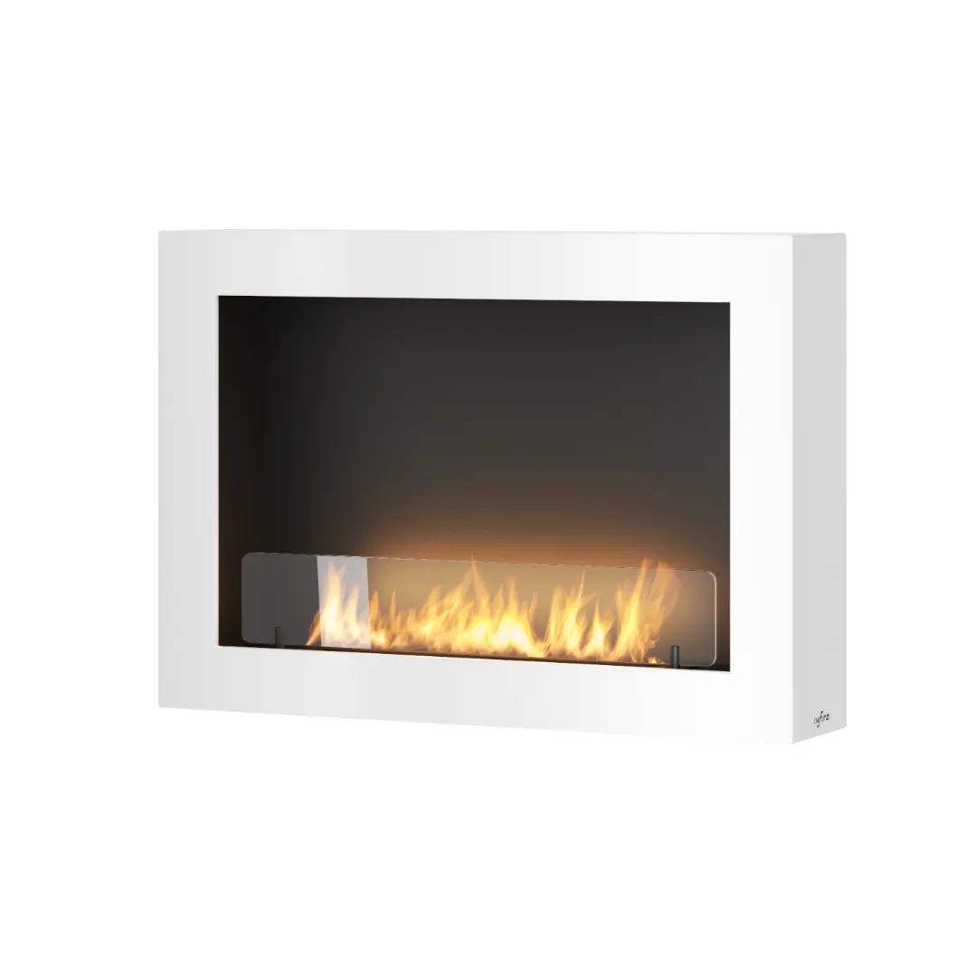 Murall 800 Biały to uniwersalny kominek na bioetanol dedykowany do zawieszenia bezpośrednio na ścianie bez konieczności wykonania wnęki – kominek zawieszany jest na dwóch kołkach montażowych. Nie można go jednak umieścić na ścianach z płyt wiórowych, meblowych, gipsowych ani na ścianach pokrytych tapetą. kominek wyposażony jest we własny system odpowietrzający, który chroni przed powstaniem ciśnienia pod paleniskiem w przypadku przelania urządzenia. Dodatkową ochronę stanowi również drugi zbiornik pod paleniskiem, który nie pozwoli wylanemu biopaliwu wydostać się poza obrys urządzenia. Standardowo urządzenie wyposażone jest w szybę ochronną, która podnosi bezpieczeństwo użytkowania oraz stabilizuje palenie się ognia. Biokominek posiada również wbudowaną izolację. Konstrukcja kominka, dopracowane detale oraz zabudowane ściany boczne sprawiają, że kominek prezentuje się doskonale z każdej perspektywy.