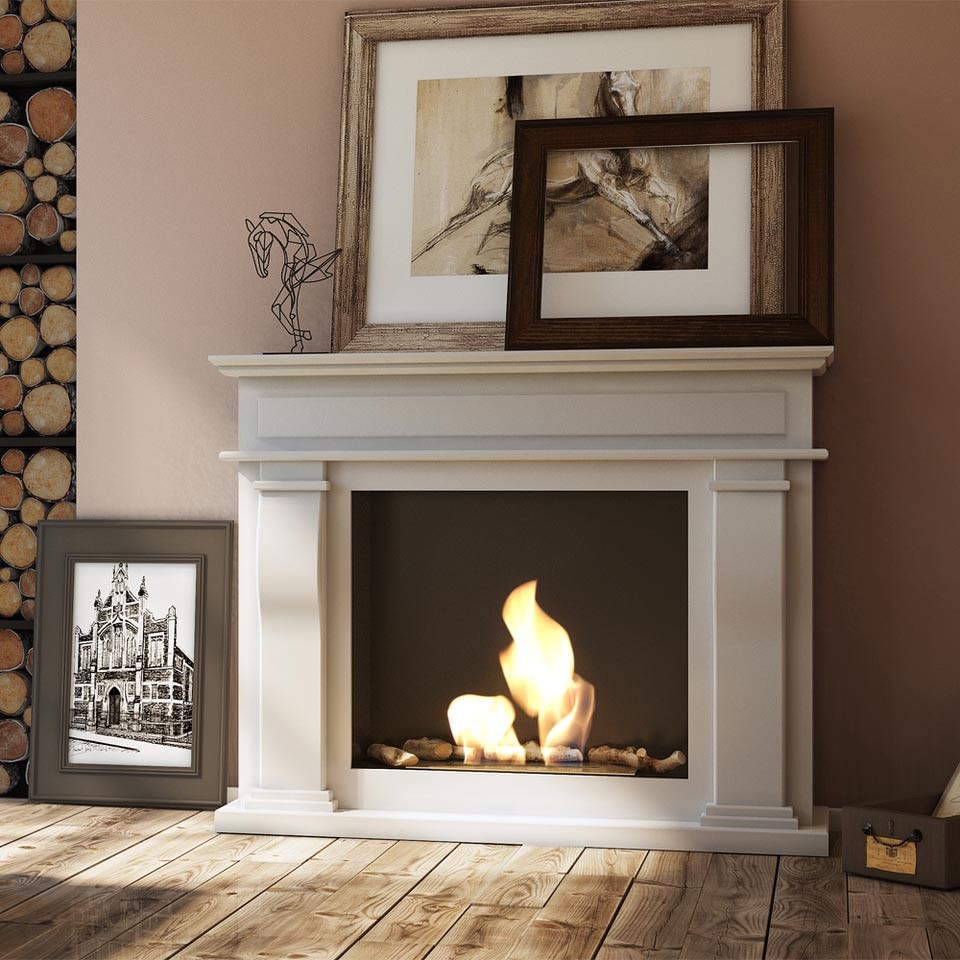 October Biały to model stylizowany na angielską modę o prostej i eleganckiej formie. Dzięki nowoczesnej interpretacji klasycznych kształtów doskonale wkomponuje się w każdy rodzaj wnętrz. Obudowa kominka wykonana jest z lakierowanego MDF, a wnętrze ze stali malowanej proszkowo farbą termoodporną na kolor czarny półmat. Biokominek wyposażony jest w palnik z wycięciem w kształcie linii. Najwyższą jakość wykonania potwierdza uzyskanie przez producenta certyfikatu ISO 9001:2015, a cały proces produkcji biokominków monitorowany jest przez TÜV Rheinland Polska (urządzenia posiadają niemiecki certyfikat bezpieczeństwa TÜV).