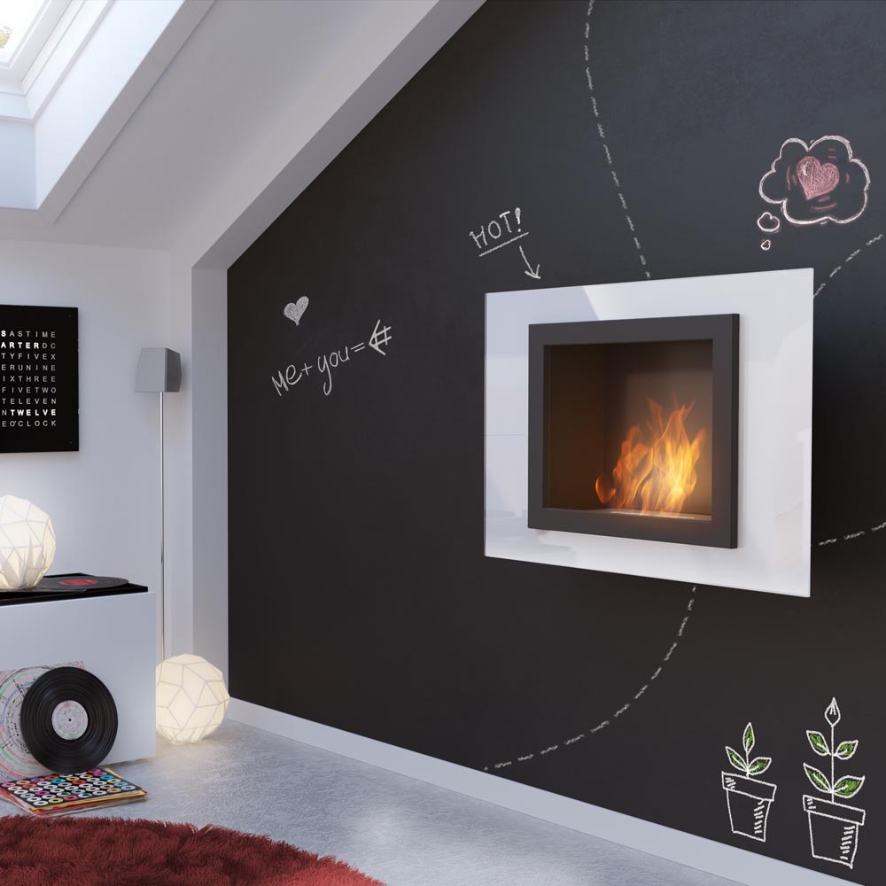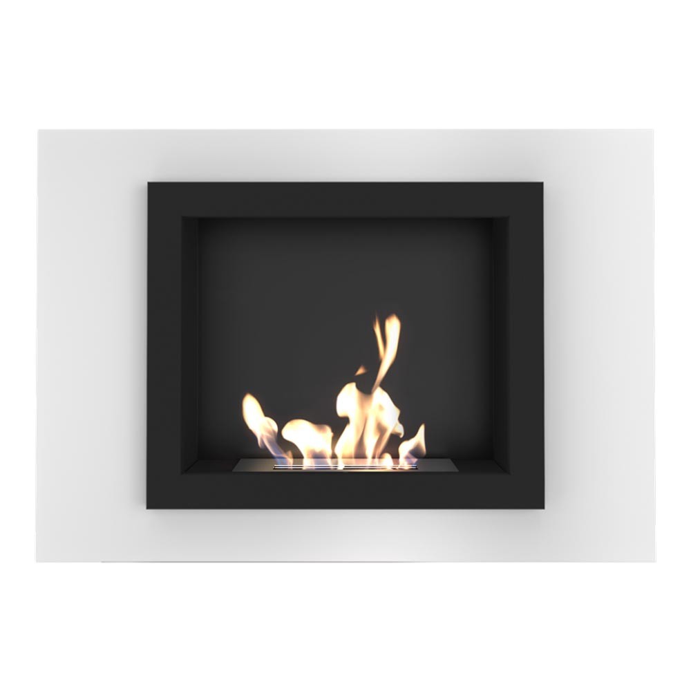 Oscar Biały to uniwersalny model, który można zawiesić bezpośrednio na ścianie lub wstawić w przygotowaną wnękę tak, aby rama naszła na zabudowę. Dzięki wysuniętym poza korpus brzegom ramy nie trzeba się martwić o perfekcyjne wykończenie otworu pod urządzenie, a sama rama o szklanej, przestrzennej konstrukcji sprawia, że urządzenie staje się mocnym akcentem dekoracyjnym i centralnym punktem każdej przestrzeni.