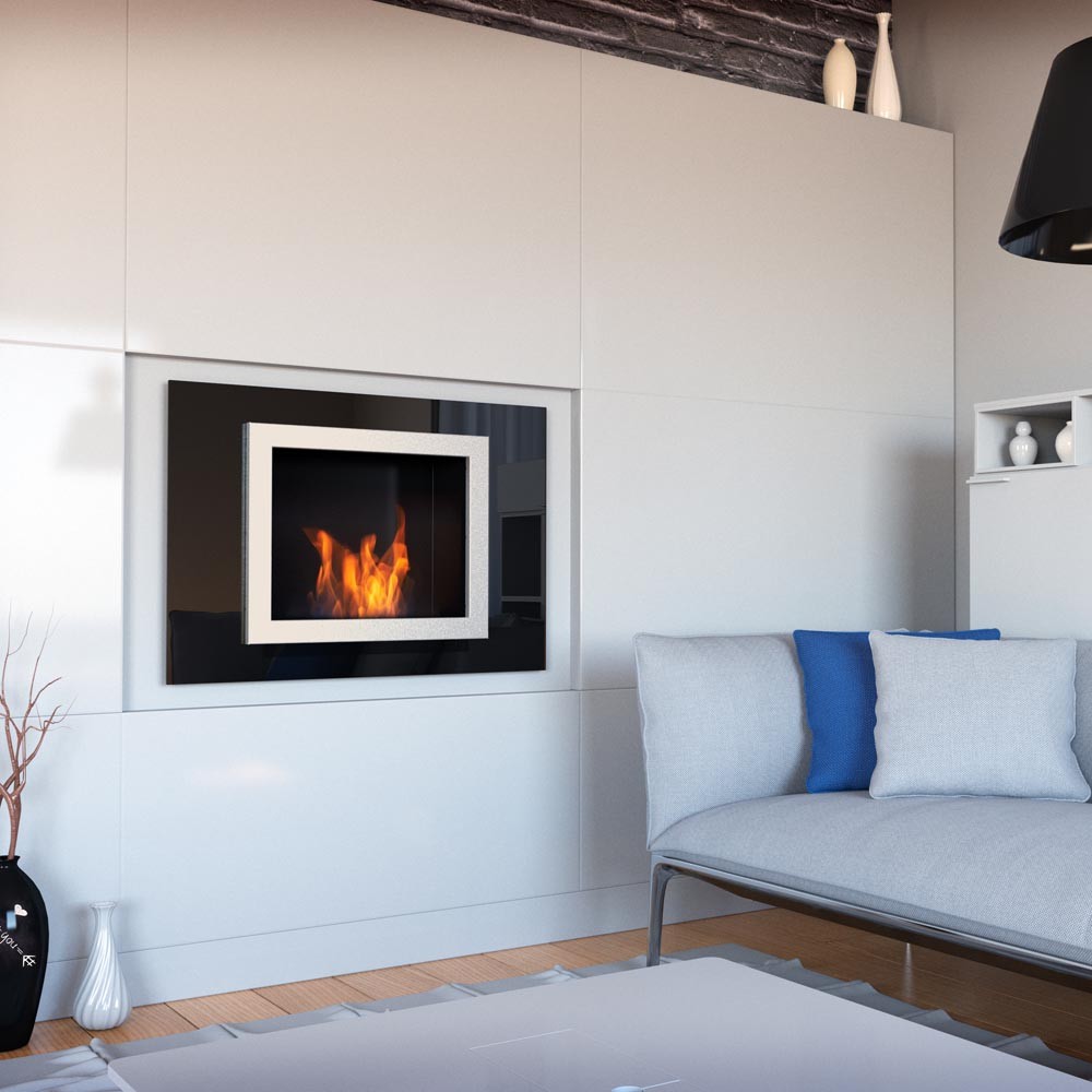 Oscar Czarny to uniwersalny model, który można zawiesić bezpośrednio na ścianie lub wstawić w przygotowaną wnękę tak, aby rama naszła na zabudowę. Dzięki wysuniętym poza korpus brzegom ramy nie trzeba się martwić o perfekcyjne wykończenie otworu pod urządzenie, a sama rama o szklanej, przestrzennej konstrukcji sprawia, że urządzenie staje się mocnym akcentem dekoracyjnym i centralnym punktem każdej przestrzeni.