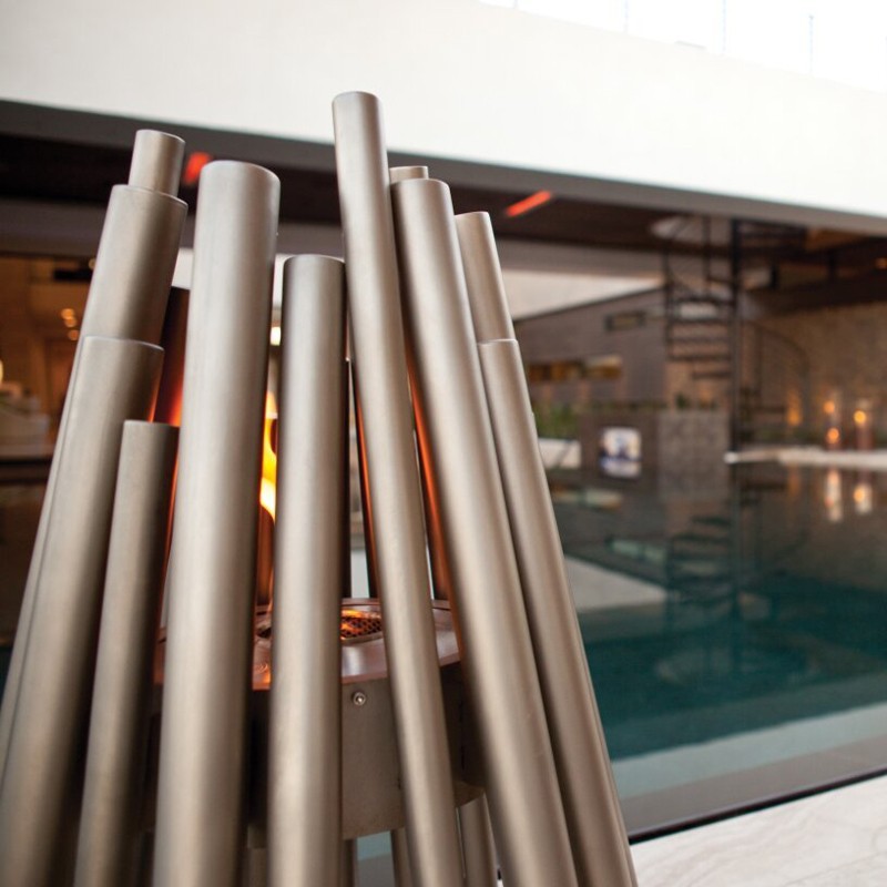Stix Stainless Steel BKto połączenie najwyższej jakości materiałów z industrialną formą. Zaprojektowany przez uznanego, barcelońskiego projektanta Hiroshi Tsunoda stanowi geometryczne połączenie wykonanych ze stali nierdzewnej rur o różnej długości. Stix to wyjątkowa rzeźba, nowoczesna interpretacja tradycyjnego ogniska oraz zwycięzca wielu prestiżowych konkursów, w tym Good Design Award 2011, Australian International Design Awards, DesignEx Best New Product 2011 oraz USA’s 2011 IIDA/HD Award for Excellence. Palenisko kominka, wykonane z najwyższej jakości stali nierdzewnej (gatunek 304), a wykończone czarną powłoką ceramiczną (górna powierzchnia), wypełnione jest wysoce absorbującymi włóknami ceramicznymi, które sprawiają, że żaden wstrząs, ani przewrócenie produktu nie spowoduje rozlania się paliwa. Biokominek można użytkować zarówno wewnątrz pomieszczeń, jak i w warunkach zewnętrznych.