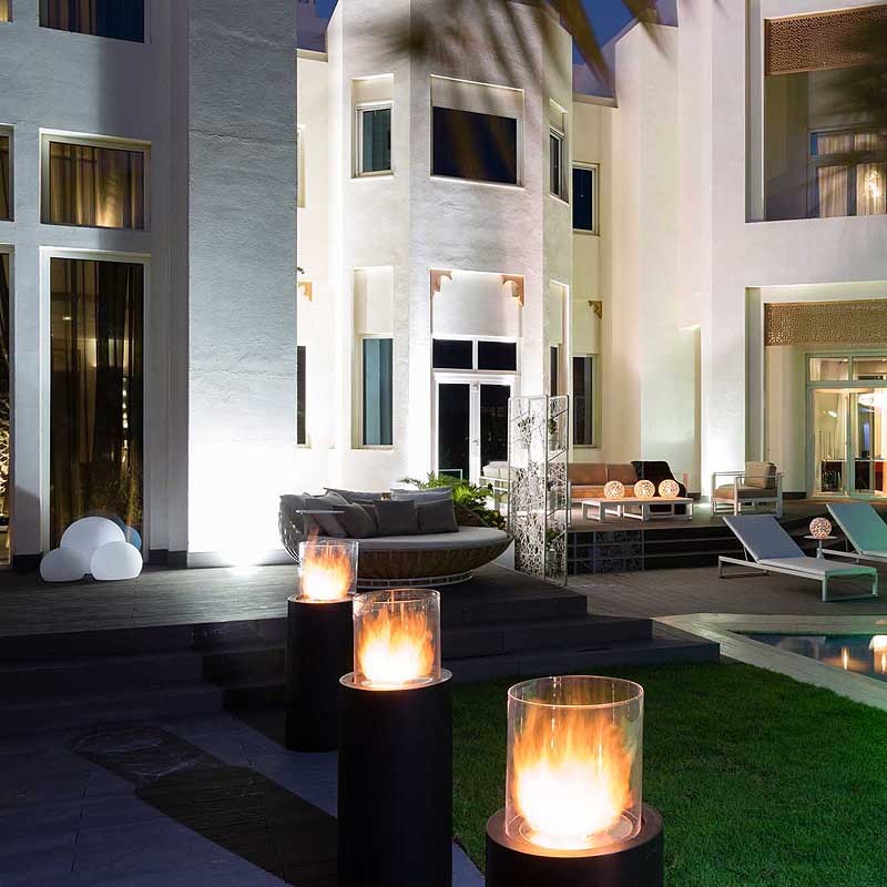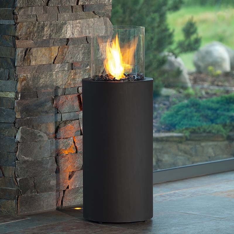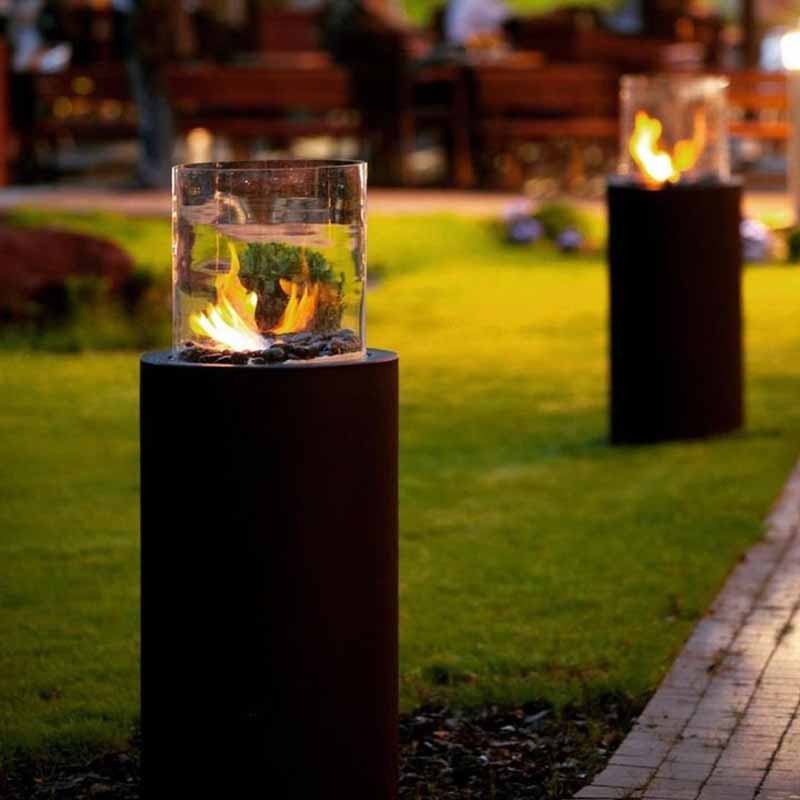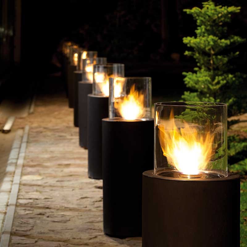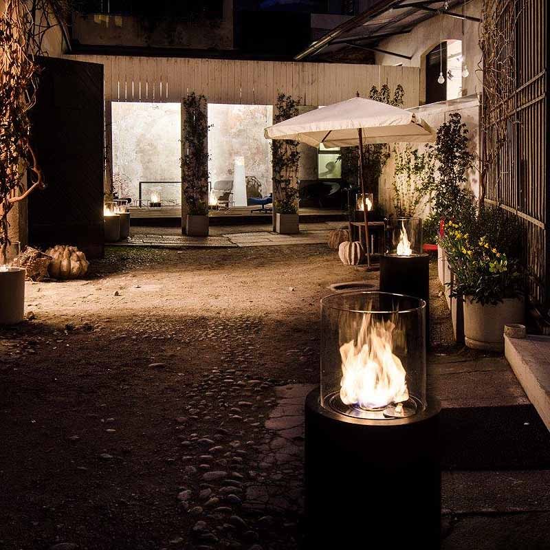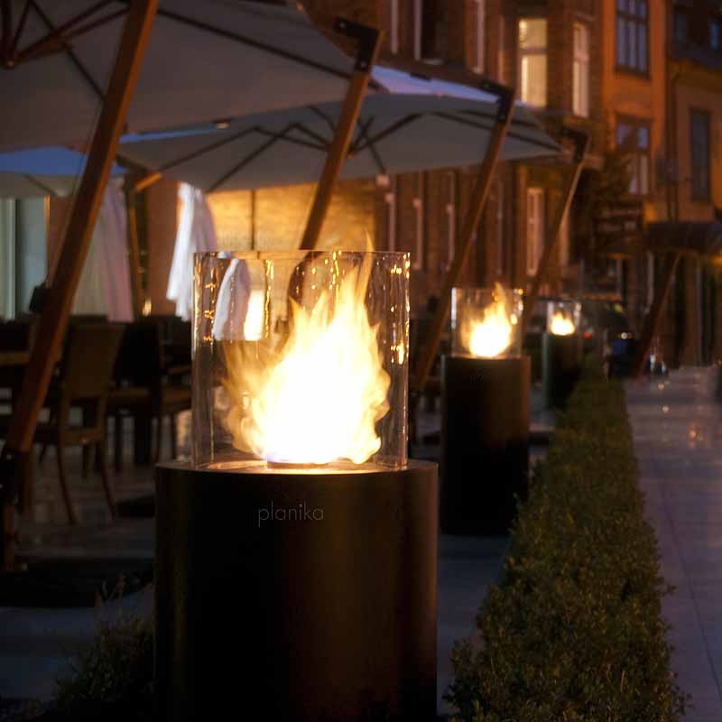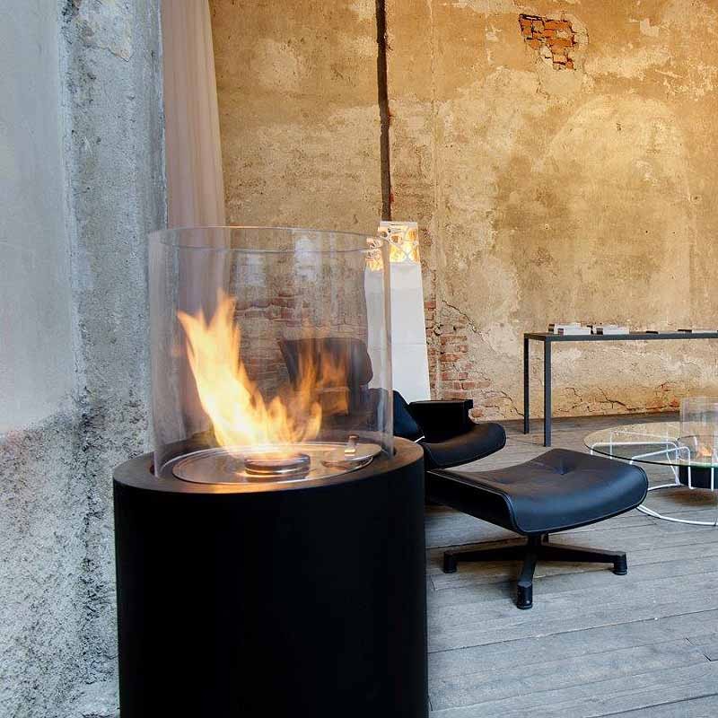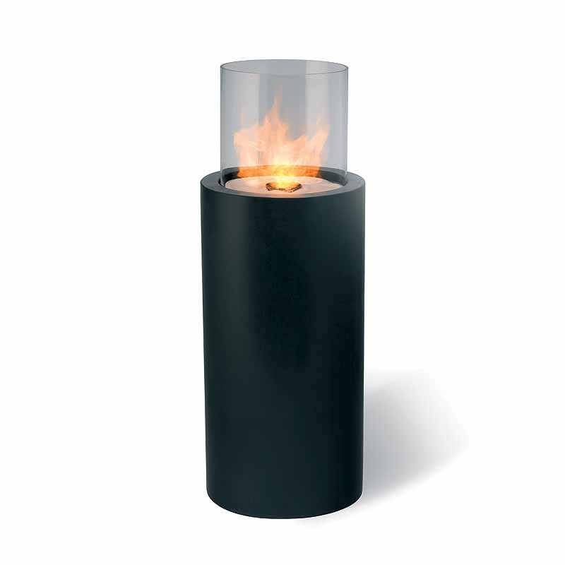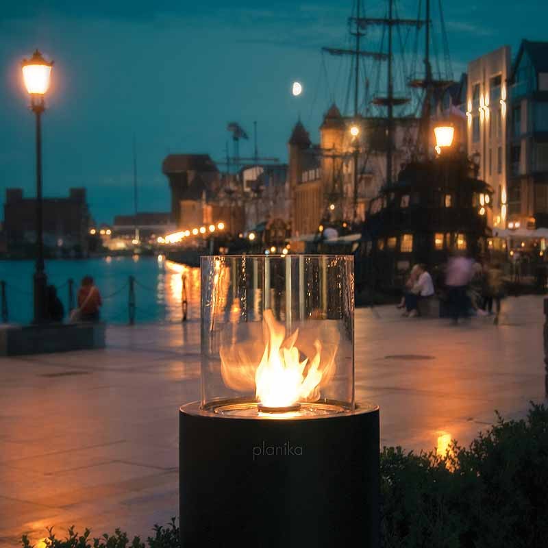 Totem to połączenie najwyższej jakości materiałów z nowoczesną formą, pasujące do każdego współczesnego wnętrza. To kolumnowy, przenośny biokominek, który z powodzeniem można ustawić w dowolnym miejscu jako oryginalny element dekoracyjny, wprowadzający unikalny, romantyczny nastrój. Sprzyja relaksowi i wyciszeniu. Palenisko kominka wypełnione jest wysoce absorbującymi włóknami ceramicznymi, które sprawiają, że żaden wstrząs, ani przewrócenie produktu nie spowoduje rozlania się paliwa. Szklany, cylindryczny klosz stabilizuje palenie się płomienia, a odbijające się w nim refleksy ognia sprawiają, że płomień wydaje się bardziej przestrzenny i jeszcze piękniej rozświetla wieczory. Biokominek można użytkować zarówno wewnątrz pomieszczeń, jak i w warunkach zewnętrznych. Biokominek Totem wykonany jest z betonu, stali nierdzewnej i szkła hartowanego, a wykończony czarnym polistone.