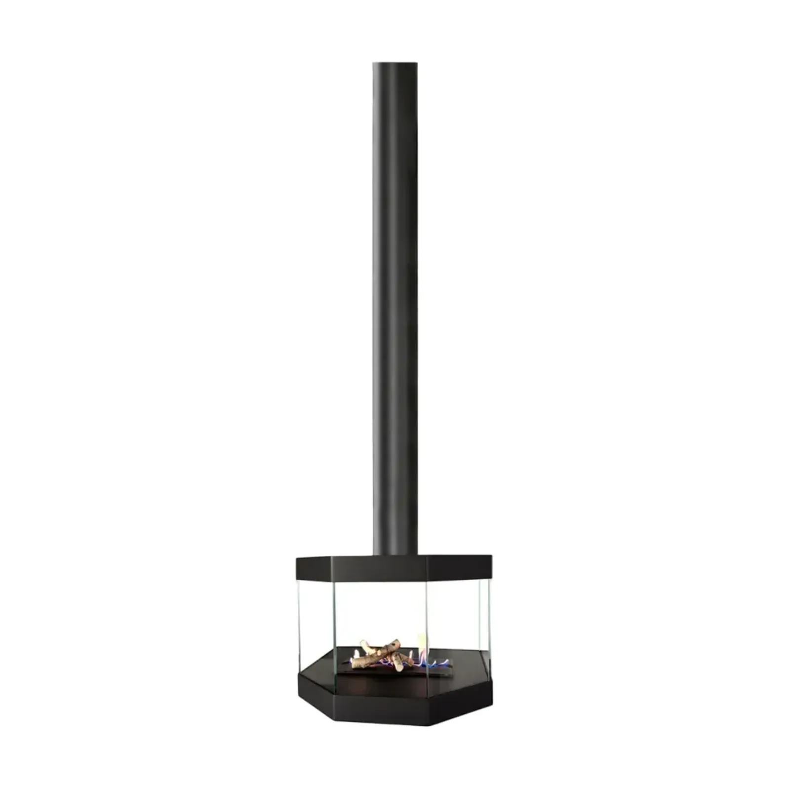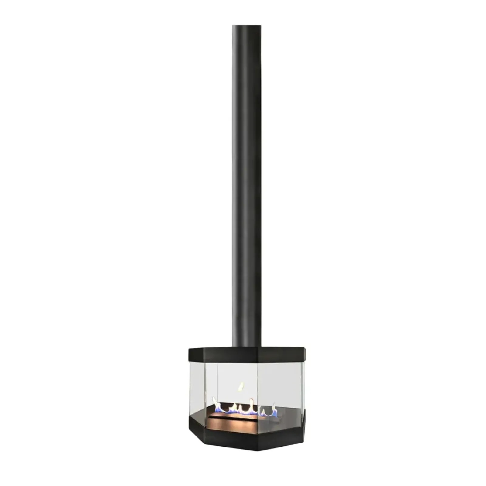 Model Coccola Tube Glass to designerski, wiszący biokominek sufitowy z przeszkleniami, który łączy nowoczesną formę z bezpieczeństwem i czystym spalaniem bioetanolu. Dzięki zawieszeniu na rurze sufitowej model ten daje efekt „unoszącego się” ognia, tworząc wyjątkową atmosferę w salonach, loftach i aranżacjach premium. Ten biokominek bez konieczności łączenia z przewodem kominowym nie produkuje dymu, sadzy ani popiołu, dlatego może być montowany praktycznie w dowolnym miejscu.