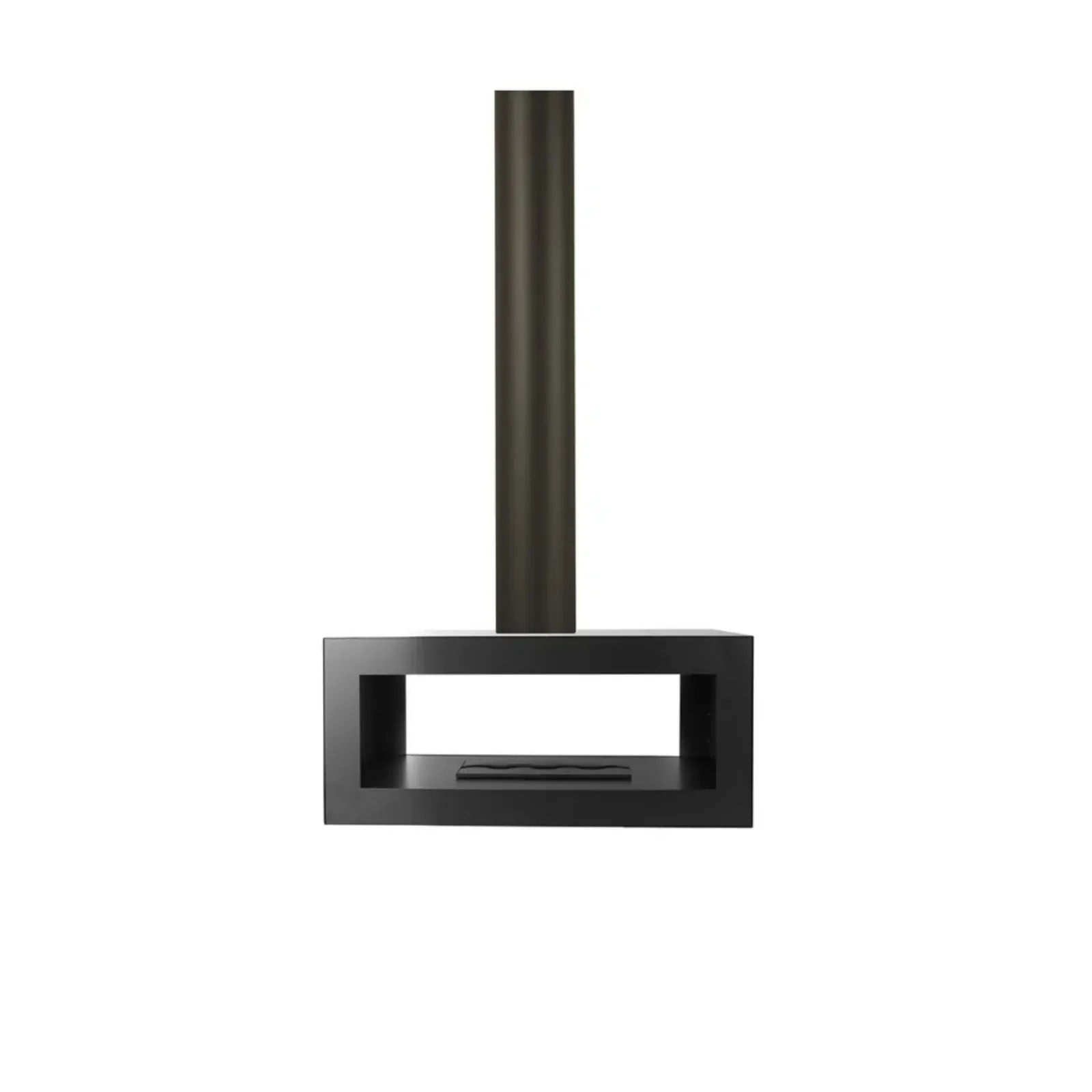 Obudowa modelu wykonana jest z blachy stalowej o grubości 1,5 mm, malowanej proszkowo farbą termoodporną w kolorze czarnym półmatowym – co zapewnia trwałość, odporność na temperaturę i estetyczne, eleganckie wykończenie. Konstrukcja wyróżnia się dwustronnym układem, dzięki czemu ogień jest widoczny z dwóch stron, co zwiększa efekt przestrzenności i pozwala lepiej wkomponować kominek w większe lub otwarte przestrzenie. Linie obudowy są proste i nowoczesne, co podkreśla minimalistyczny, designerski charakter urządzenia.