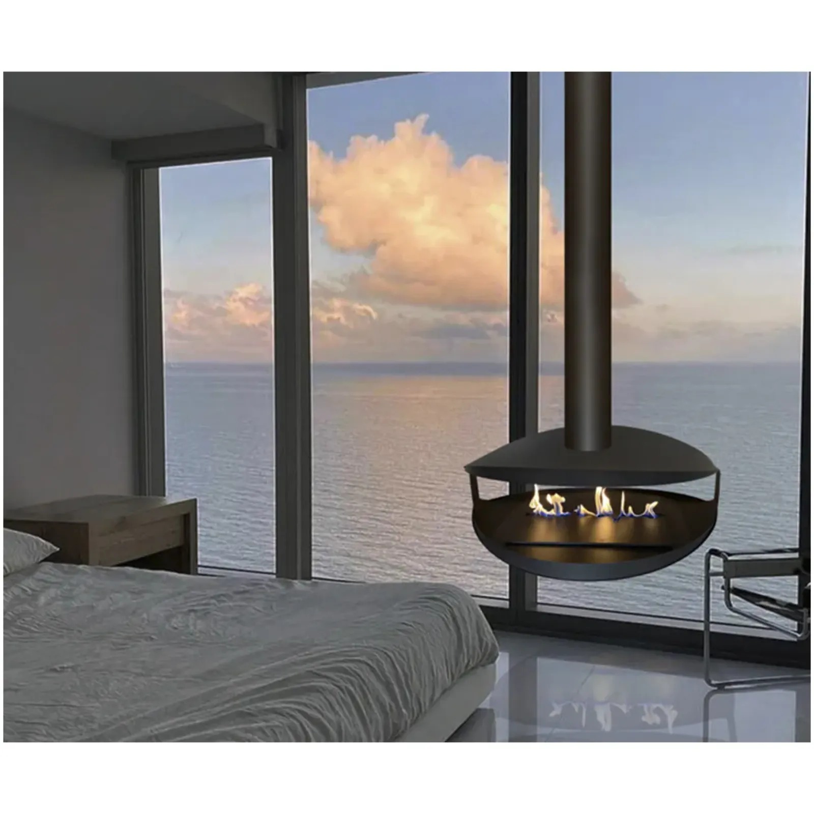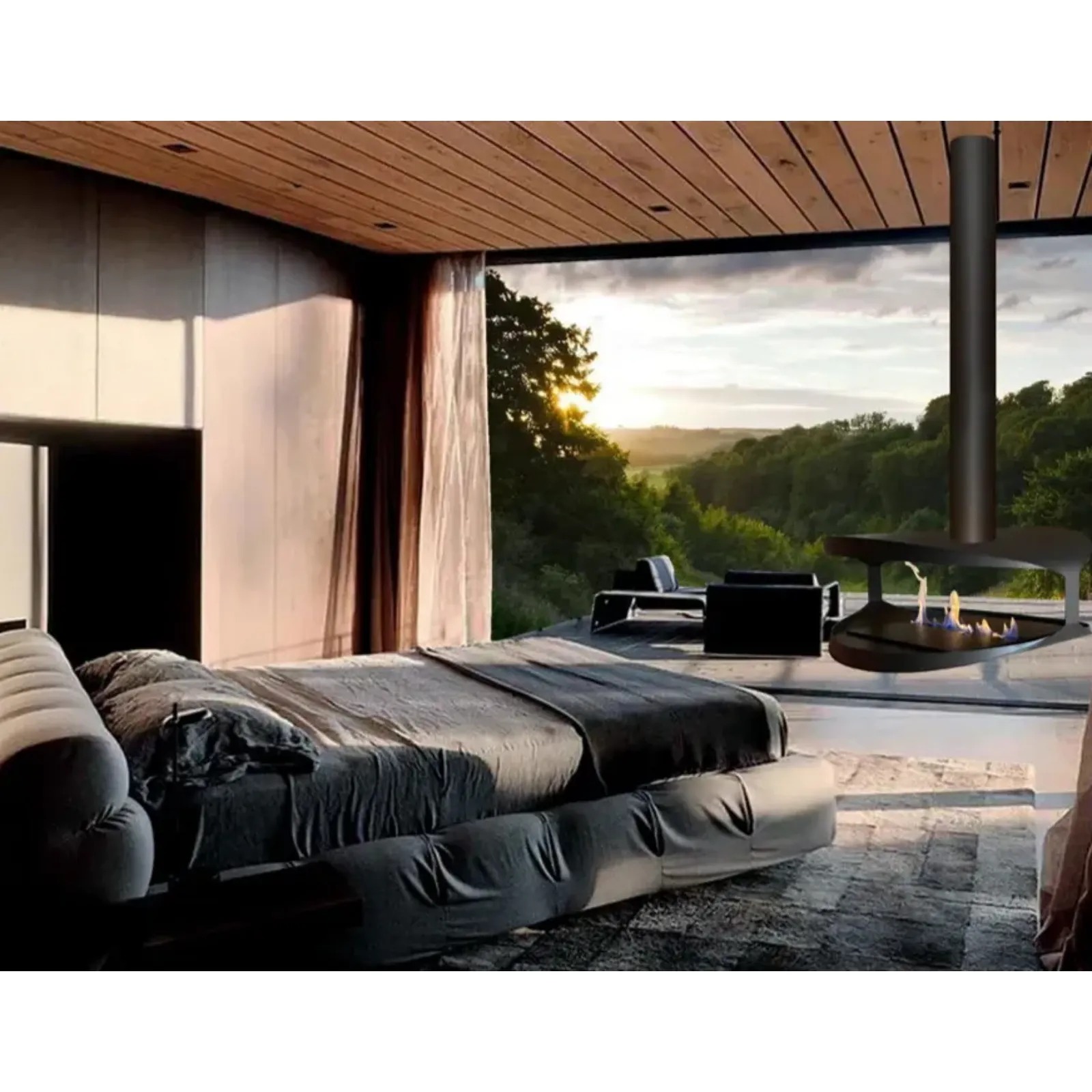 Model Hualalai Round Tube to designerski, wiszący biokominek sufitowy o zaokrąglonej, przelotowej formie, który doskonale podkreśla charakter nowoczesnych wnętrz. Dzięki spalaniu bioetanolu kominek nie wymaga instalacji kominowej, nie produkuje dymu ani sadzy, a jego montaż możliwy jest niemal w każdym pomieszczeniu. Model Round Tube oferuje efektowny, dekoracyjny ogień, który staje się centralnym punktem wnętrza i tworzy wyjątkowy klimat w salonach, loftach i aranżacjach premium.