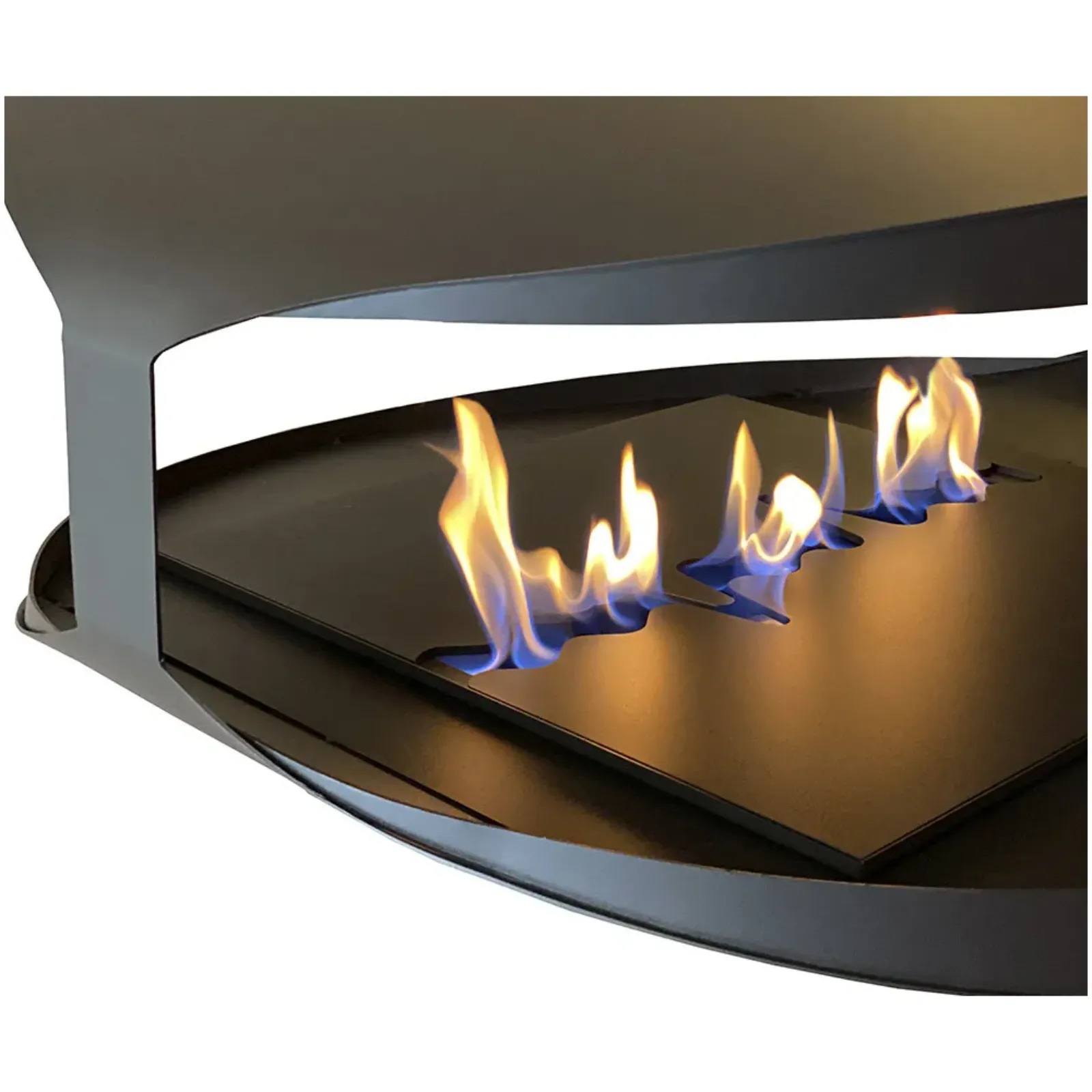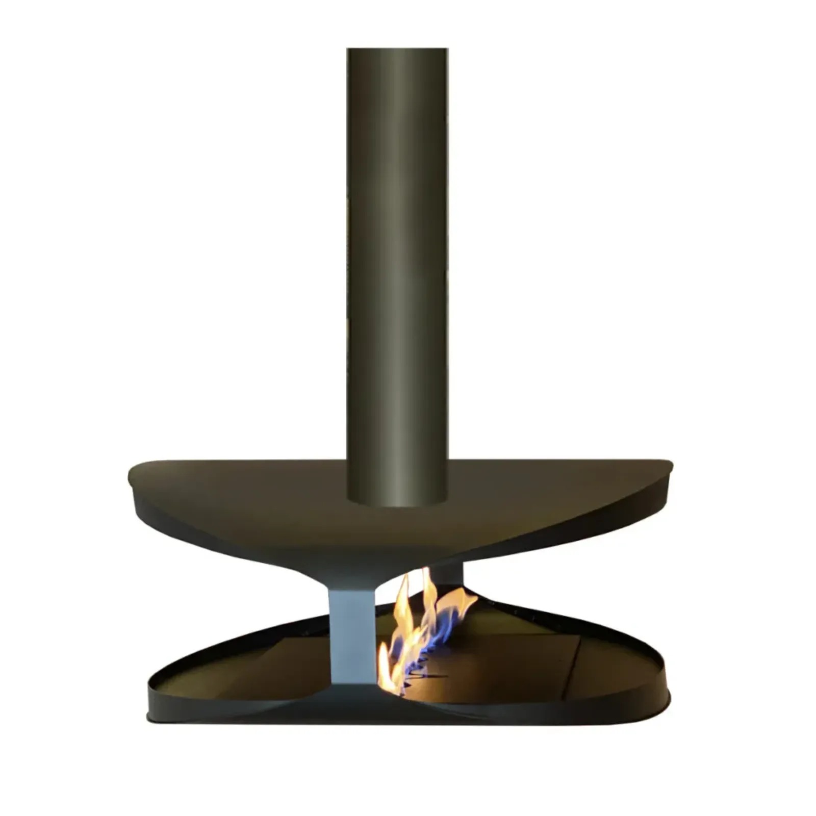 Korpus Hualalai Round Tube wykonany został z wytrzymałej stali o grubości 1,5 mm, malowanej proszkowo na kolor czarny półmatowy. Okrągła forma z wyraźnie zaznaczonym wycięciem oraz przelotowy układ konstrukcji umożliwiają obserwowanie płomienia z obu stron, tworząc efekt przestrzenności i lekkości. To idealny wybór dla osób, które poszukują eleganckiego, bezkominowego kominka łączącego walory estetyczne z praktycznym i czystym działaniem.