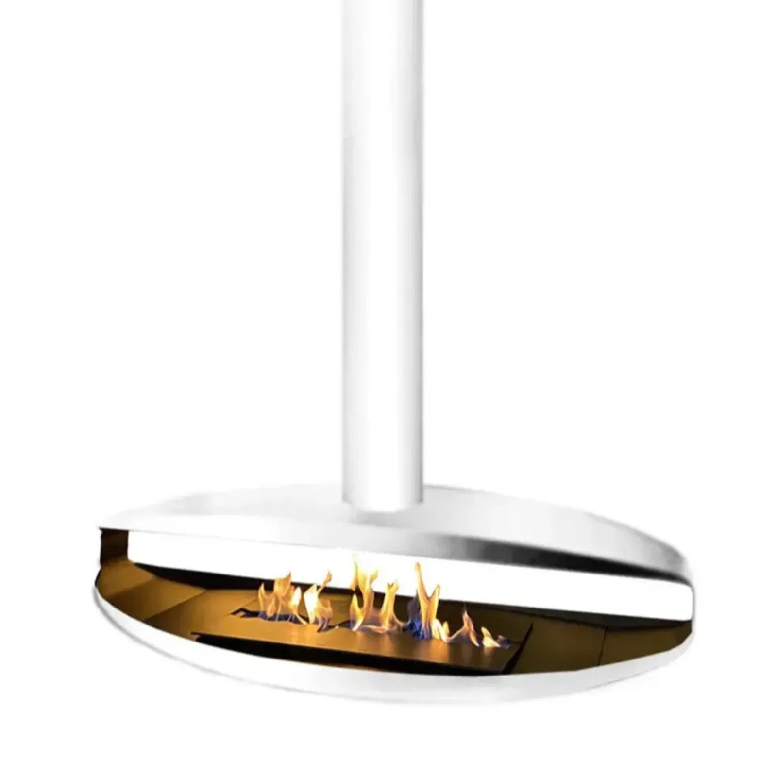 Model Hualalai Tube White to elegancka, biała wersja nowoczesnego wiszącego biokominka sufitowego z serii Hualalai. Dzięki zasilaniu bioetanolem model ten nie wymaga komina i może być montowany w dowolnym miejscu – w salonach, apartamentach, przestrzeniach open space czy wnętrzach minimalistycznych. Podwieszana forma tworzy efekt lekkości oraz wrażenie unoszącego się płomienia, co nadaje wnętrzu ciepła i luksusowego charakteru.