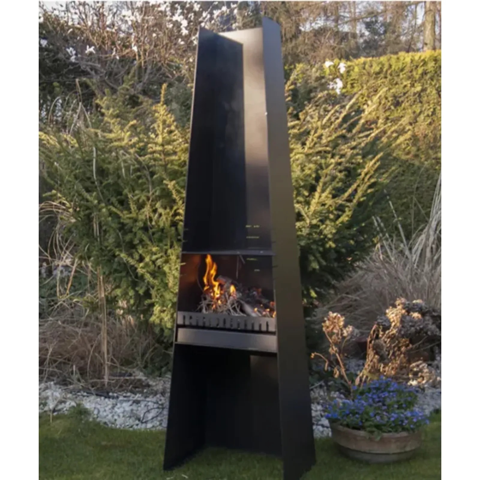 Obudowa modelu Antofala wykonana jest z wytrzymałej stali malowanej proszkowo na kolor czarny półmatowy. Zastosowana farba jest odporna na warunki atmosferyczne, co zapewnia długotrwałą estetykę i ochronę przed czynnikami zewnętrznymi. Dzięki innowacyjnej konstrukcji, zmiana wkładu pozwala na szybkie przejście z funkcji ekologicznego biokominka do tradycyjnego paleniska na drewno lub praktycznego grilla zewnętrznego.