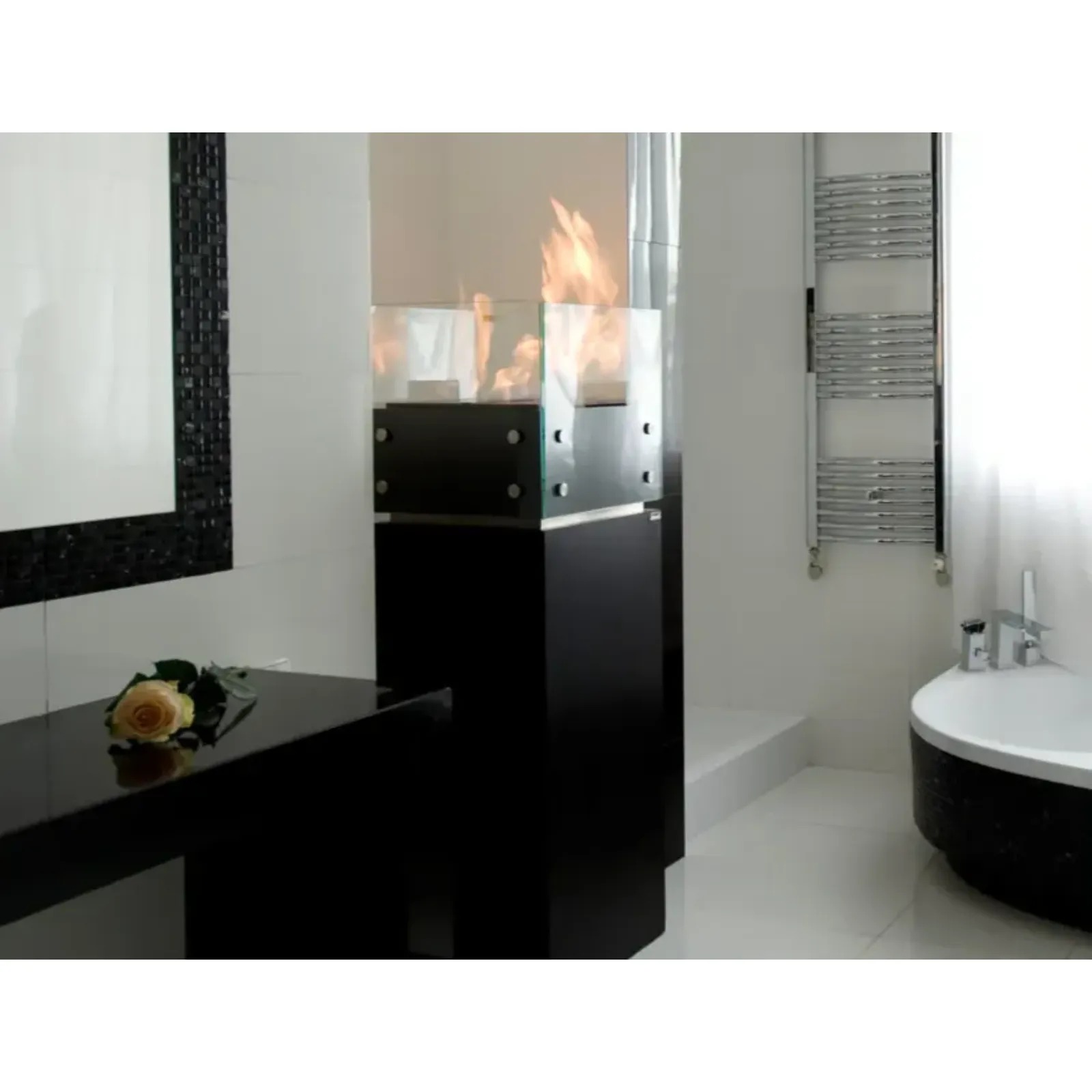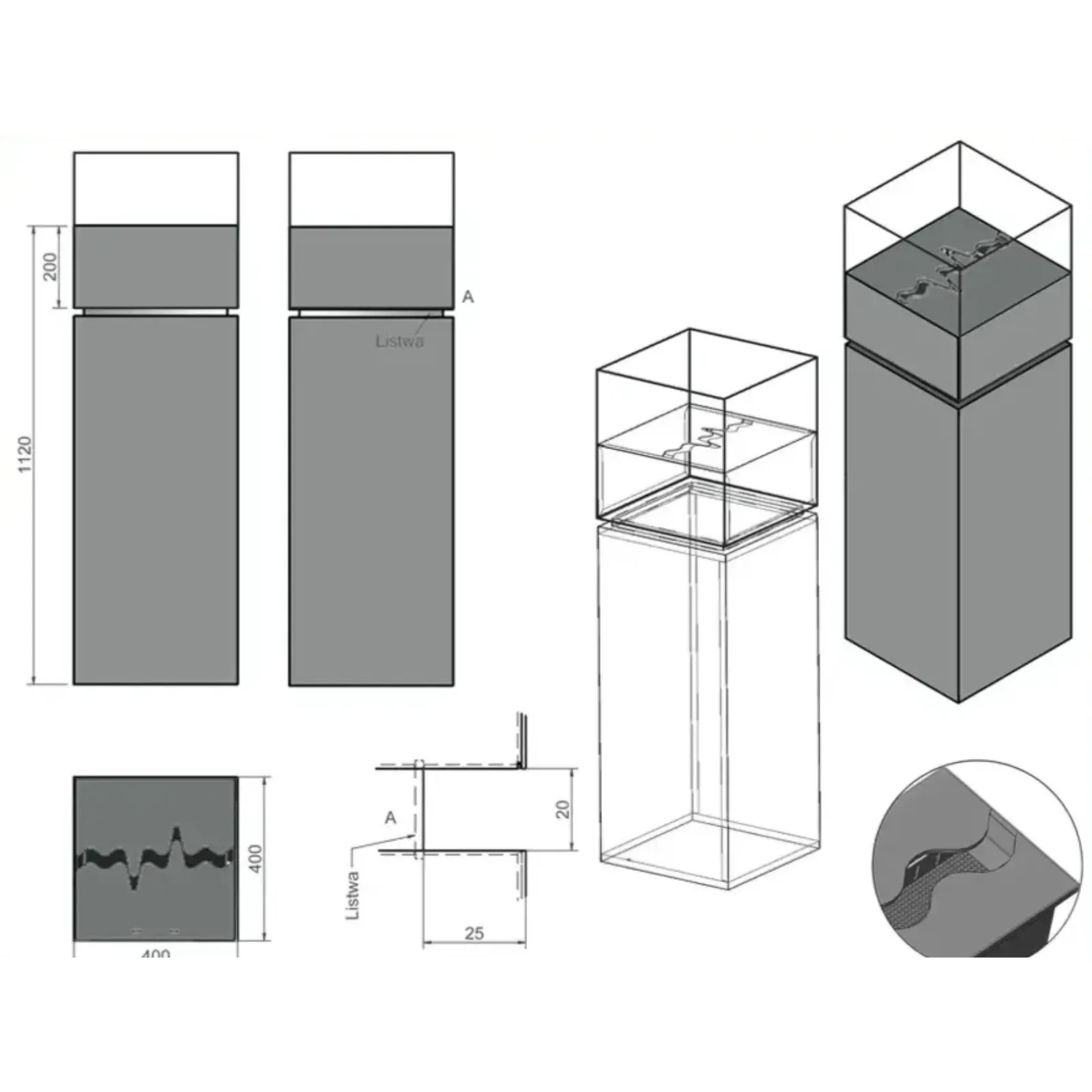 Konstrukcja biokominka opiera się na solidnej, czarnej podstawie o geometrycznym kształcie, którą wieńczą szklane osłony zabezpieczające płomień i dodające całości elegancji. Wykorzystanie materiałów odpornych na czynniki zewnętrzne sprawia, że Baru może być z powodzeniem używany na zewnątrz, tworząc wyjątkowy klimat podczas wieczorów na świeżym powietrzu. Produkt dostarczany jest w formie gotowej do natychmiastowego użytku, dzięki czemu możesz cieszyć się atmosferą żywego ognia od razu po rozpakowaniu.