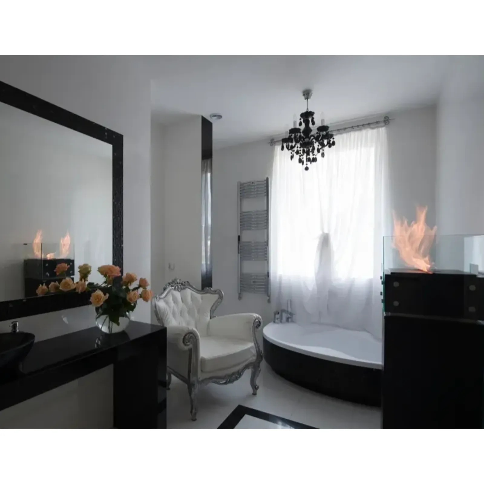 Biokominek opalany jest ekologicznym biopaliwem, które spala się czysto – bez dymu, sadzy i popiołu. Dzięki temu możesz cieszyć się naturalnym ogniem bez konieczności montażu komina i bez negatywnego wpływu na środowisko. To idealne rozwiązanie dla osób, które pragną połączyć komfort, estetykę i troskę o planetę. Biokominek tworzy przytulną atmosferę, zapewniając ciepło i blask ognia w sposób całkowicie ekologiczny.