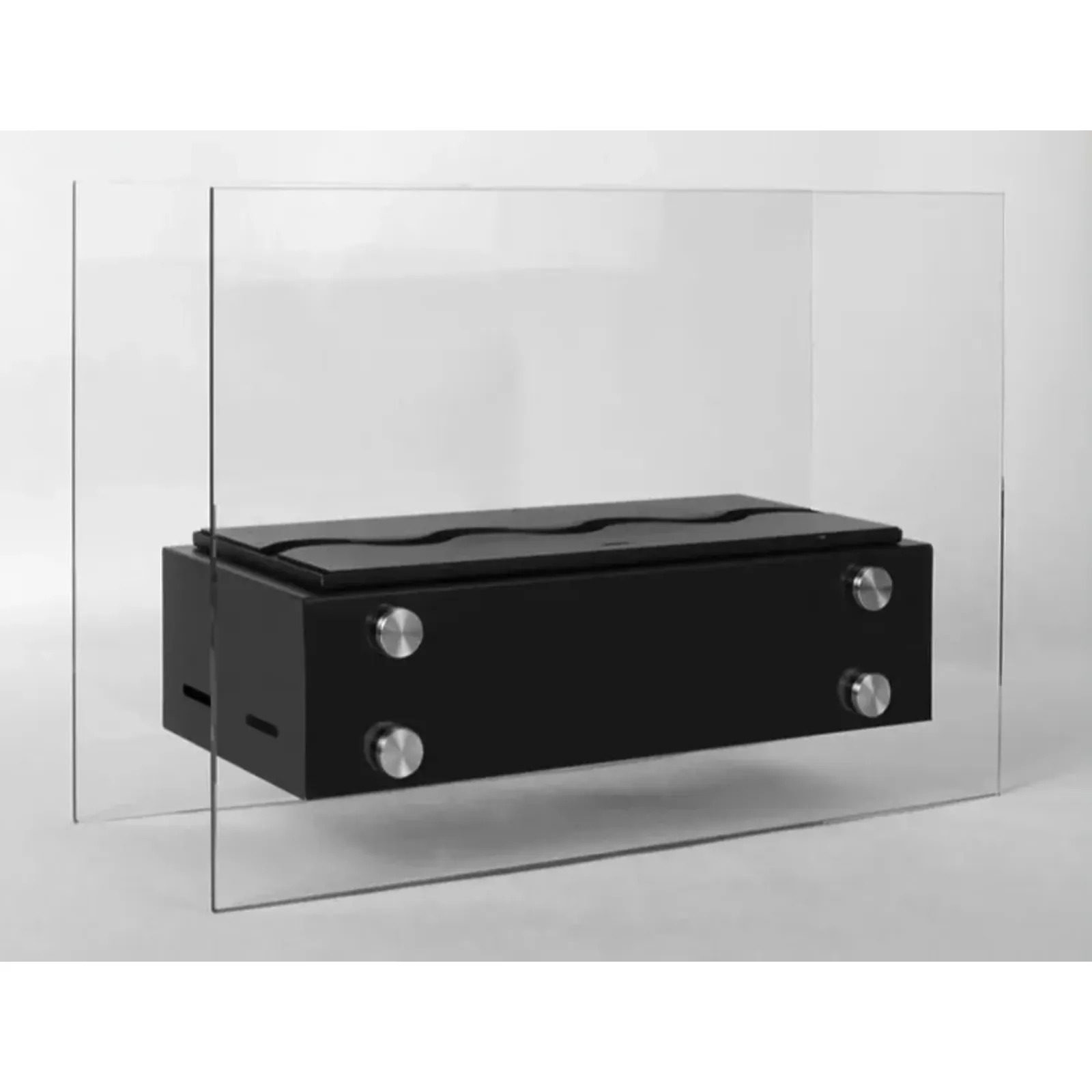 Konstrukcja biokominka składa się ze stalowej podstawy pod biopalenisko i dwóch paneli z hartowanego szkła o grubości 6 mm, które zapewniają maksymalne bezpieczeństwo podczas użytkowania, chroniąc płomień i stabilizując jego kierunek. Przezroczyste tafle szkła nadają konstrukcji lekkości i elegancji, eksponując ogień z każdej strony i podkreślając jego naturalne piękno.