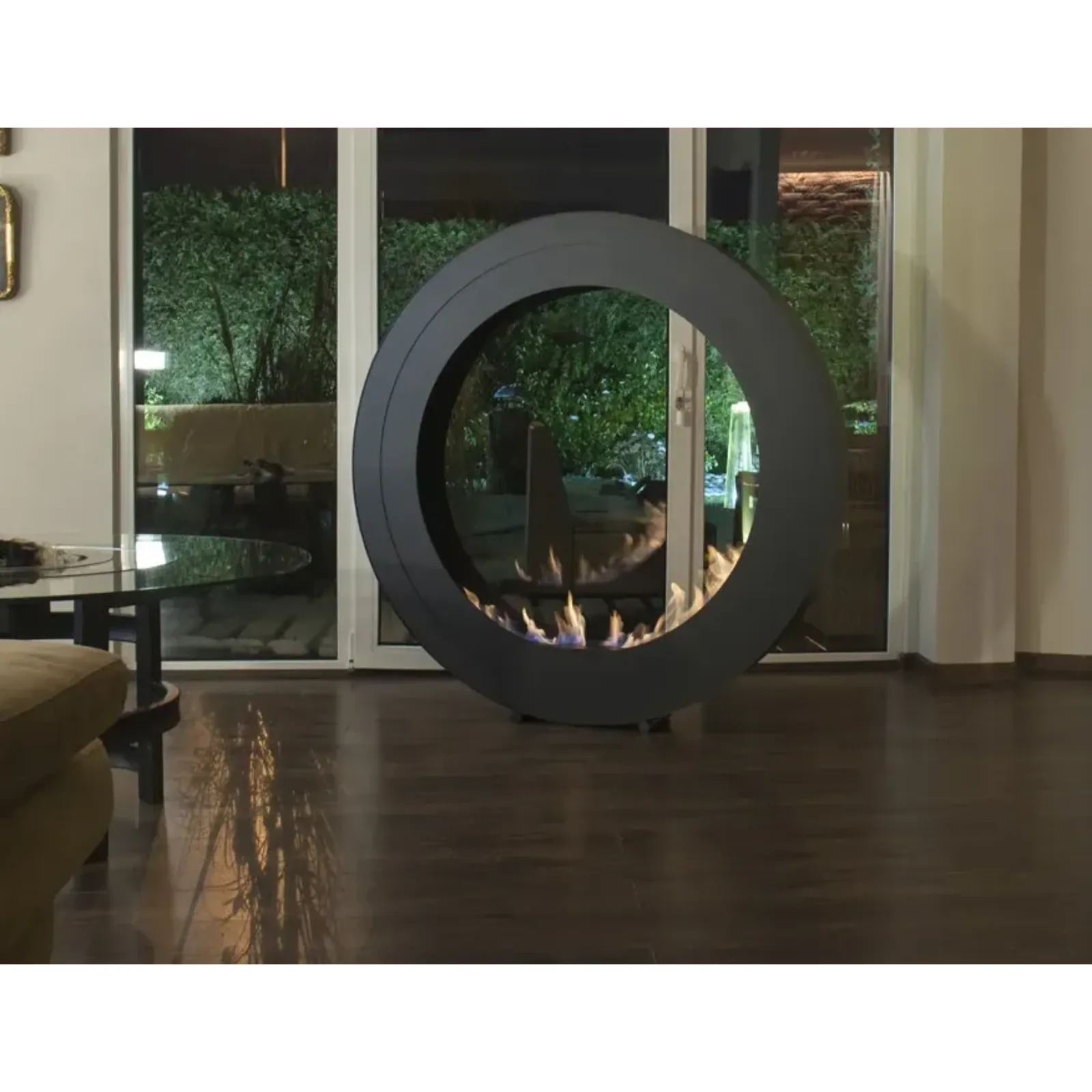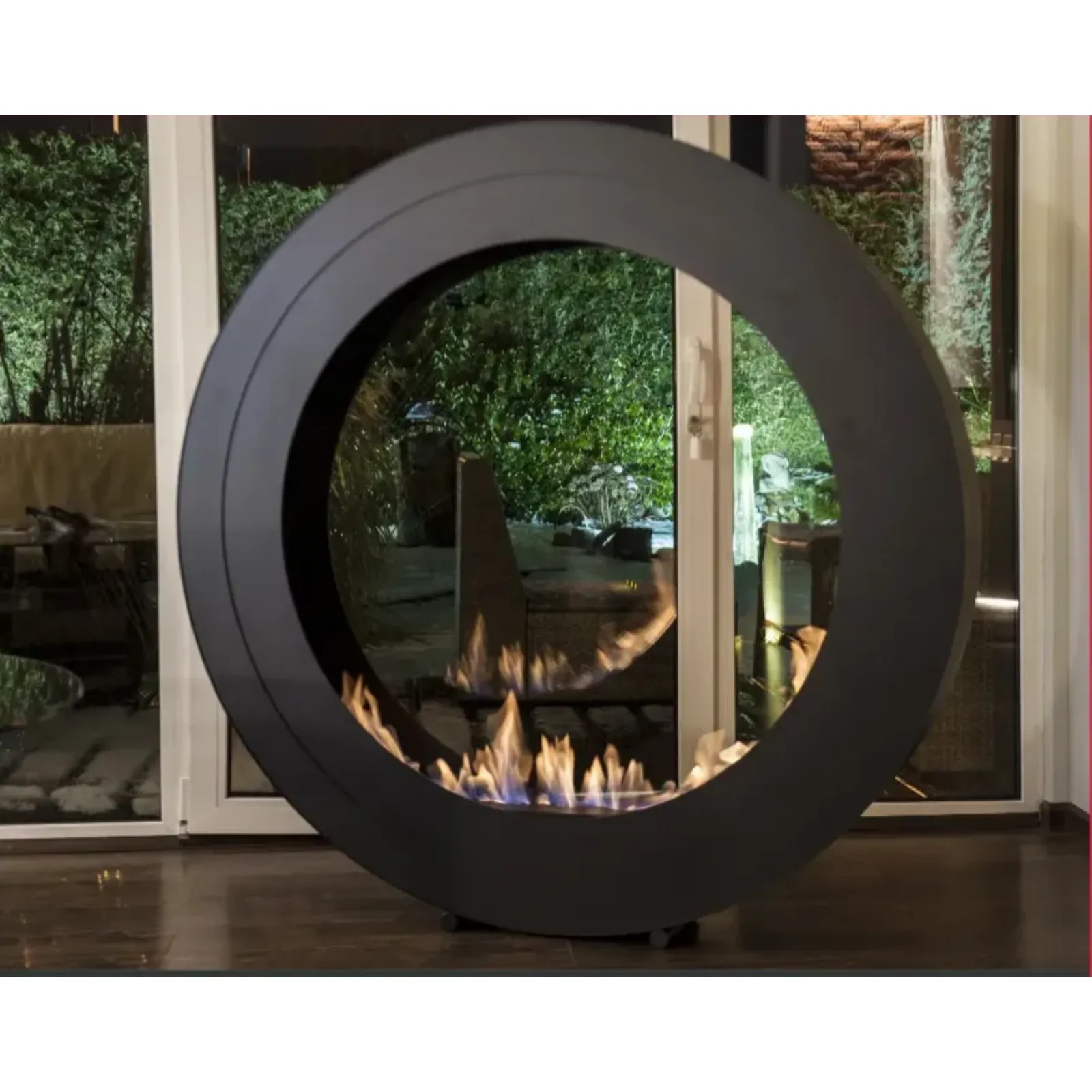 Solidna, geometryczna, wolnostojąca rama o asymetrycznym kształcie wykonana z wysokogatunkowej stali nierdzewnej stanowi dyskretną, ale trwałą, podstawę dla ognia. Minimalizm tego modelu jest subtelnie podkreślony przez czyste powierzchnie. Okrągły kształt o średnicy 140 cm stanowi mocny akcent dekoracyjny, który świetnie wpasowuje się zarówno w przestrzenie nowoczesne, industrialne, jak i bardziej klasyczne — wszędzie tam, gdzie liczy się równowaga.