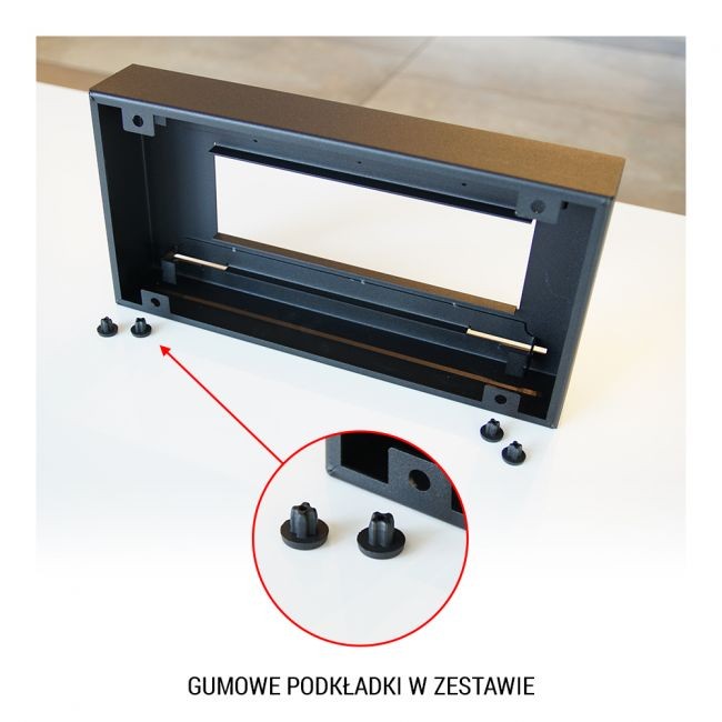 Obudowa Galina Czarny, wykonana ze stali malowanej proszkowo, idealnie prezentuje się z każdej perspektywy. Dwie szyby ochronne podnoszą bezpieczeństwo użytkowania oraz stabilizują palenie się ognia, a odbijające się w nich refleksy płomienia sprawiają, że wydaje się on bardziej przestrzenny i jeszcze piękniej rozświetla wieczory. Biokominek można użytkować zarówno wewnątrz pomieszczeń, jak i w warunkach zewnętrznych.