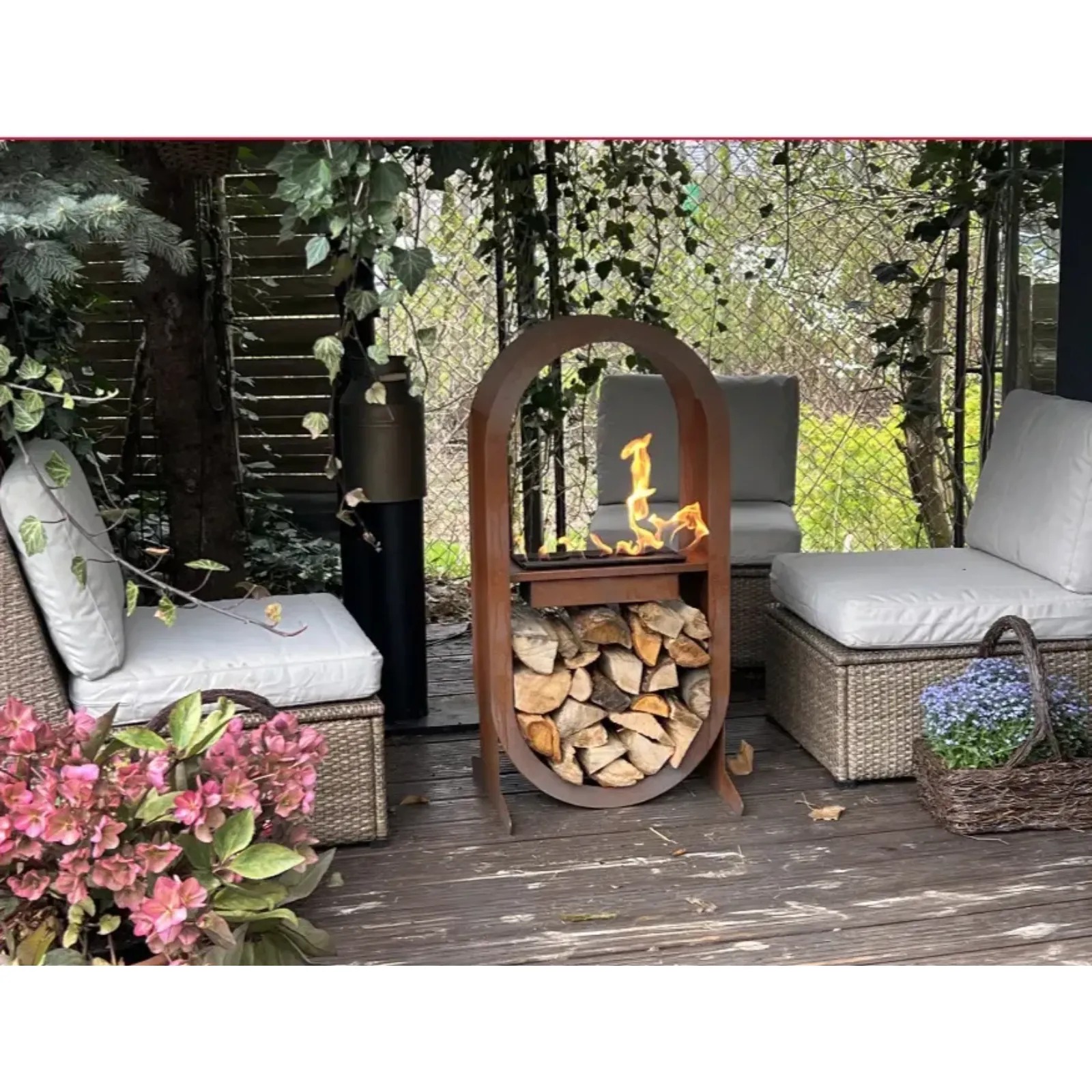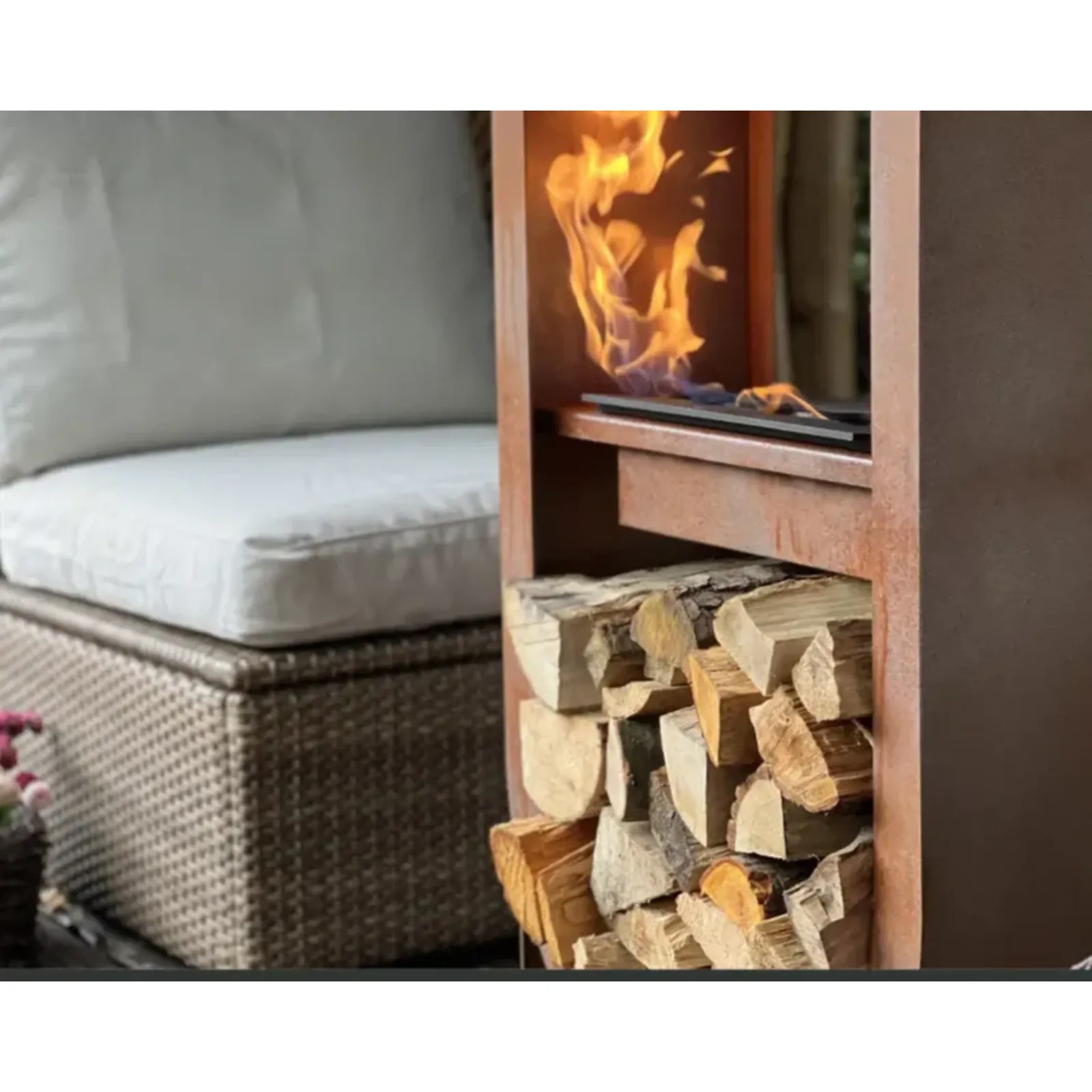 Konstrukcja Irazu opiera się na solidnej podstawie wykonanej ze stali, w której umieszczony jest wkład na biopaliwo. Obudowa wykonana jest z wytrzymałej stali o grubości 1.5 mm, standardowo malowanej proszkowo na kolor czarny półmatowy. Zastosowana farba jest odporna na warunki atmosferyczne, co umożliwia bezpieczne użytkowanie na balkonie, tarasie lub w ogrodzie. Wybierz Irazu, jeśli szukasz przenośnego kominka na bioetanol z funkcjonalnym i estetycznym miejscem na drewno.