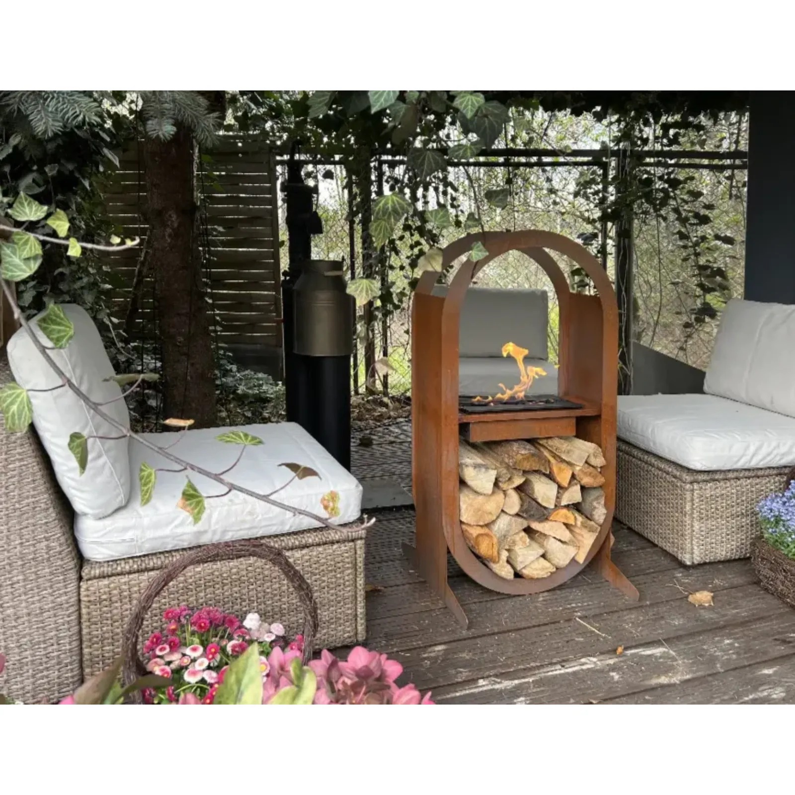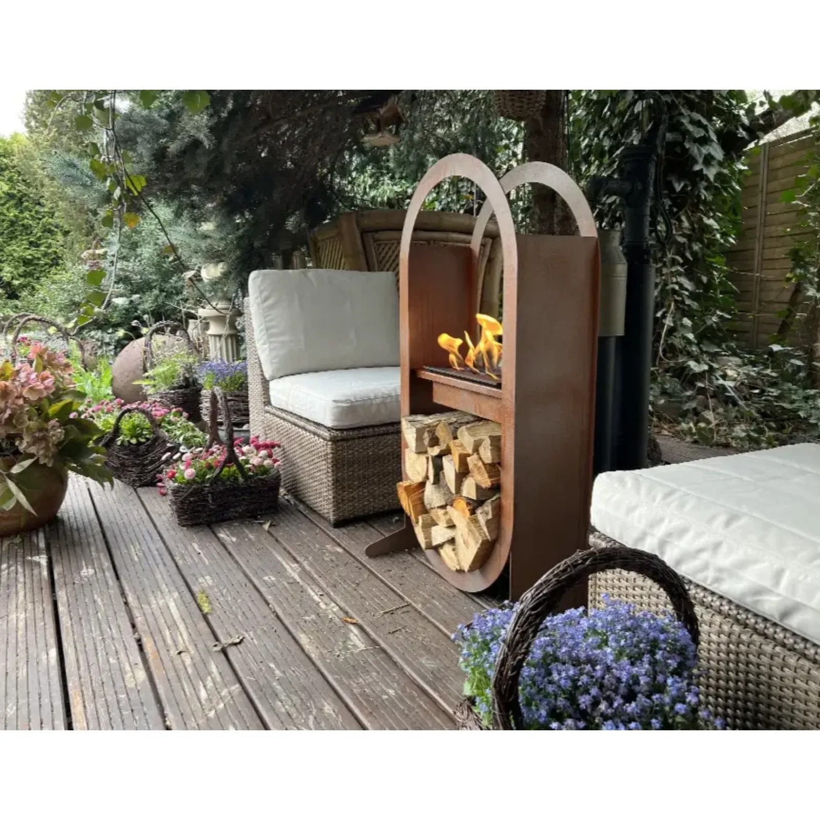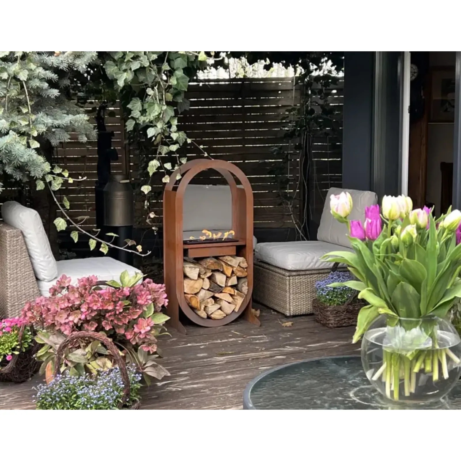 Model Irazu to wolnostojące palenisko na bioetanol, stanowiące świeży pomysł na nowoczesną aranżację wnętrza, balkonu bądź tarasu. Dzięki swojemu industrialnemu stylowi oraz niezbyt dużym gabarytom, ten dekoracyjny kominek jest idealnym uzupełnieniem zarówno przestronnych, jak i niewielkich mieszkań, a jego prosta budowa daje wiele możliwości aranżacyjnych. Cechą, która wyróżnia model Irazu, jest wbudowane miejsce na drewno opałowe w podstawie, które pełni funkcję praktycznego schowka oraz efektownego elementu wizualnego, nawet gdy kominek jest opalany bioetanolem.