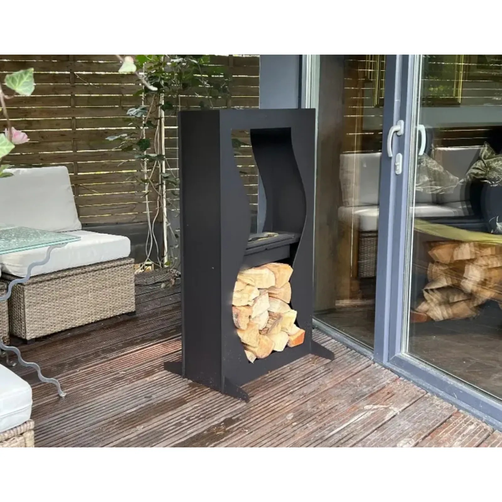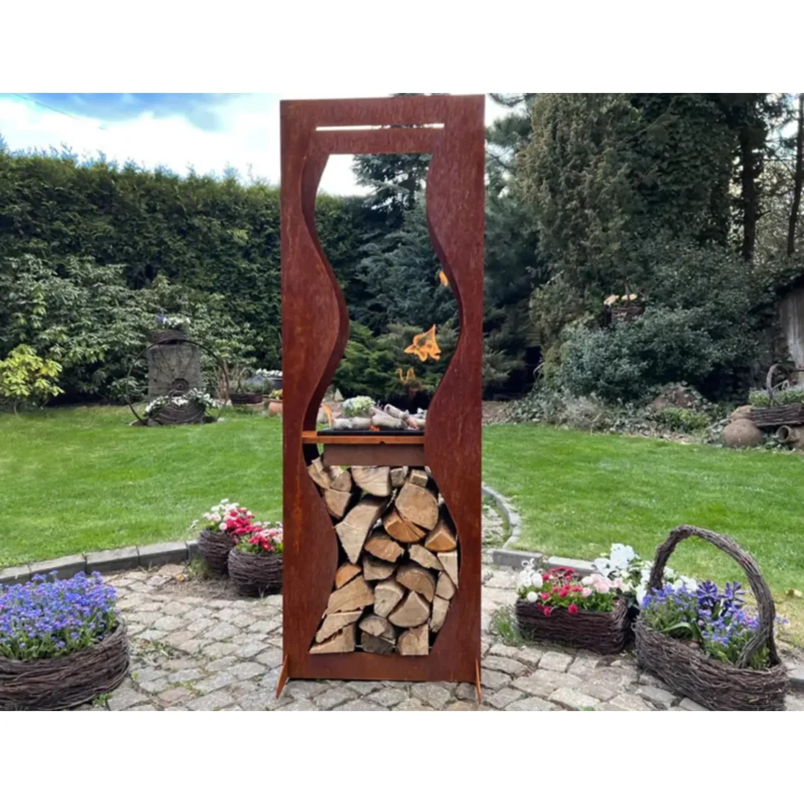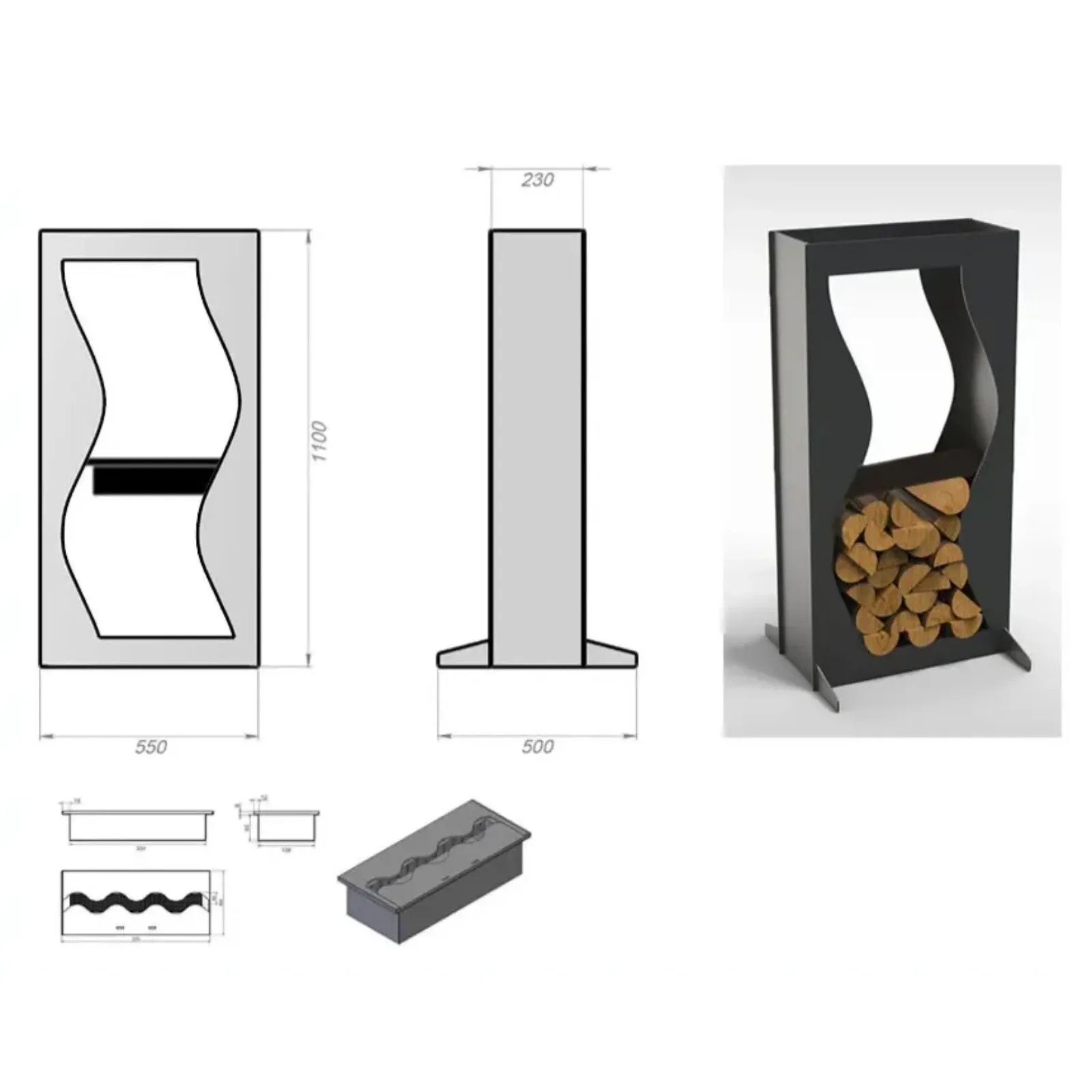 - wbudowane miejsce na drewno opałowe w podstawie,