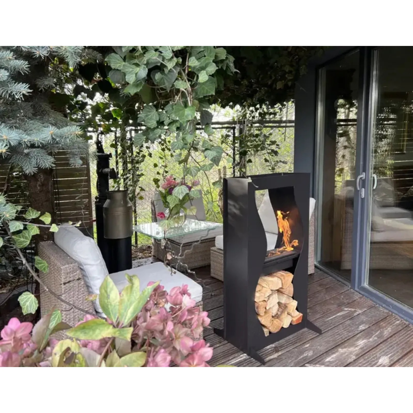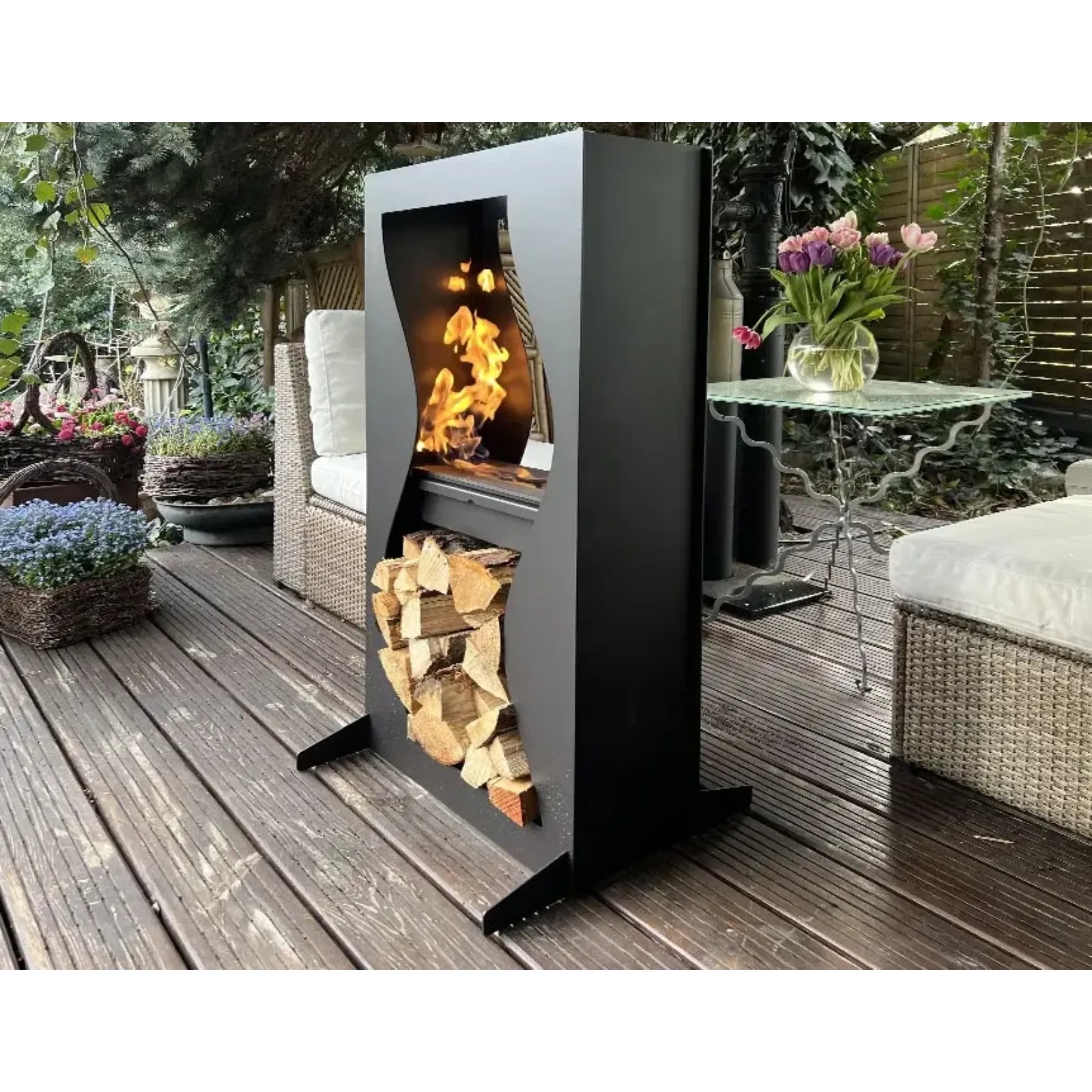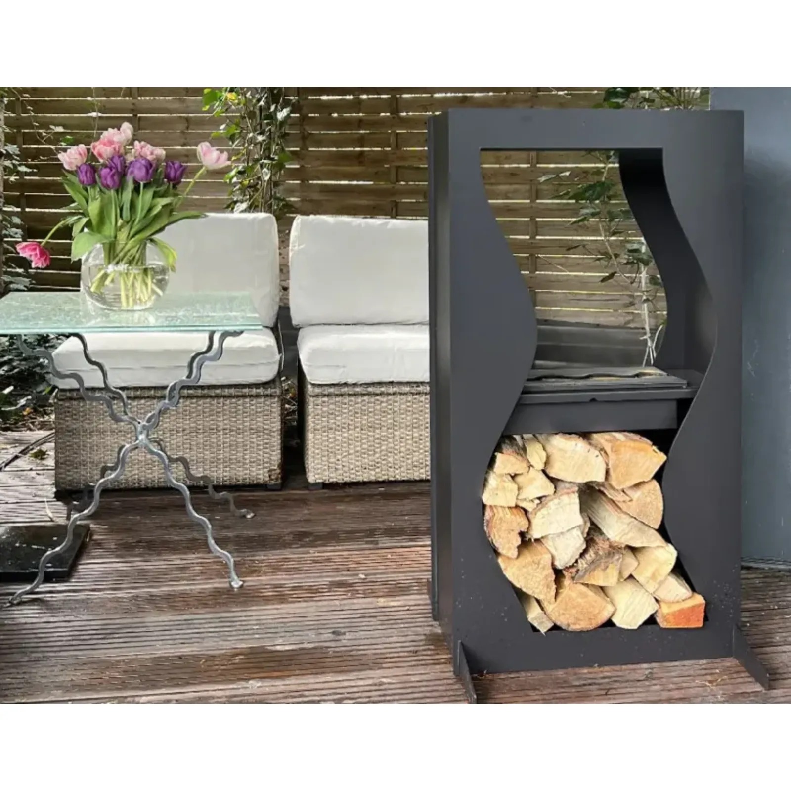 - wbudowane miejsce na drewno opałowe w podstawie,