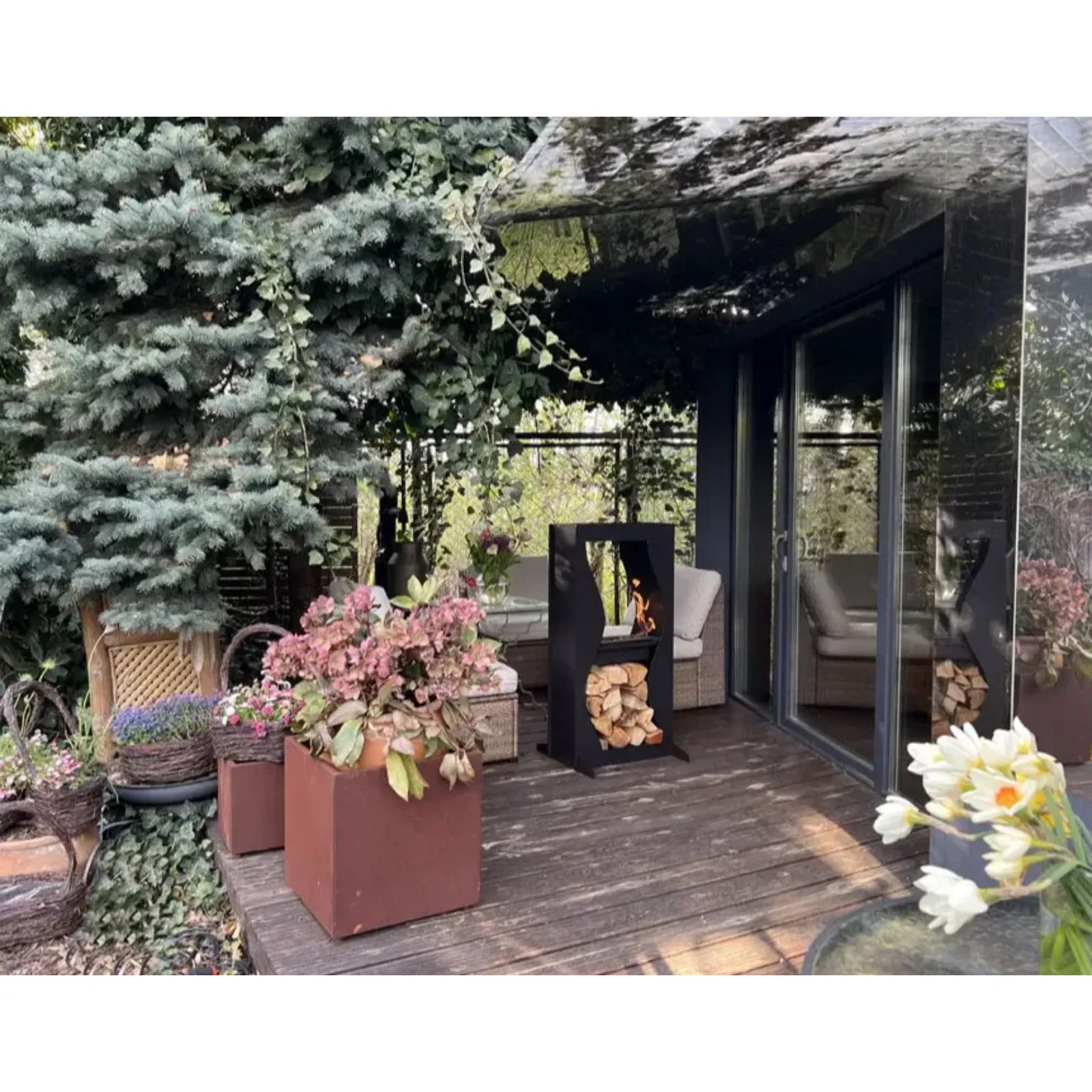 Model Kerinci to wolnostojący kominek na biopaliwo, stanowiący świeży pomysł na nowoczesną aranżację wnętrza, balkonu bądź tarasu. Ten dekoracyjny element wystroju jest niezwykle wszechstronny, idealnie pasując do wnętrz w stylu skandynawskim, industrialnym i minimalistycznym. Dzięki niezbyt dużym gabarytom, z powodzeniem stanowi uzupełnienie nawet niewielkiego mieszkania. Na pozór prosta, lecz oryginalna budowa tego przenośnego paleniska daje wiele możliwości aranżacyjnych, a efektowne wycięcie w kształcie fali (widoczne na zdjęciu) pełni funkcję wizualną i tworzy stylowe miejsce na dekoracyjne ułożenie drewna.
