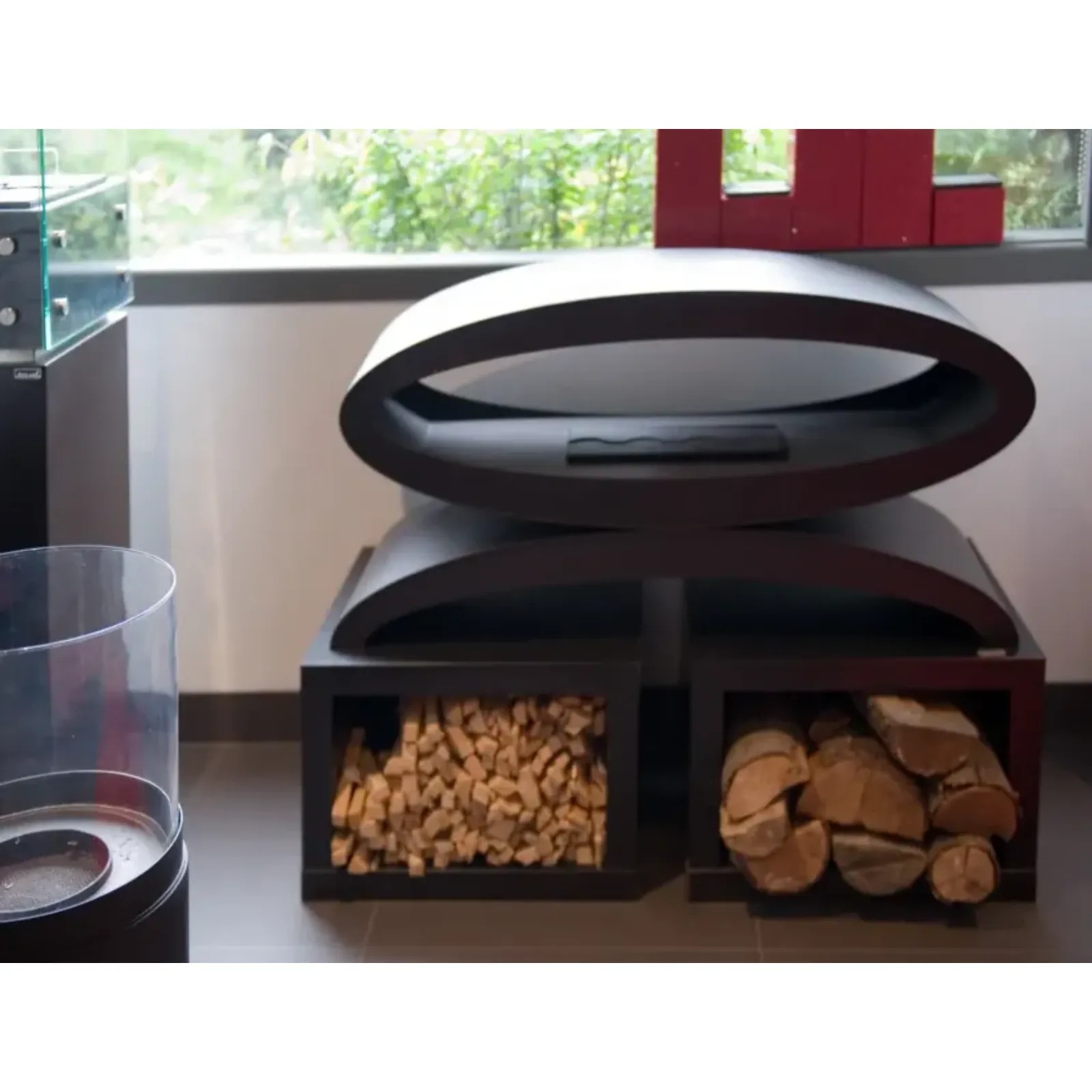 Nowoczesna, opływowa forma modelu Meru osadzona została na solidnej, stabilnej podstawie, która podkreśla elegancki charakter konstrukcji. Obudowa wykonana jest ze stali o grubości 1,5 mm malowanej proszkowo farbą termoodporną na półmatową czerń, co nadaje jej minimalistyczny i ponadczasowy wygląd. Panoramiczny dostęp do ognia oraz miękkie krzywizny bryły sprawiają, że model ten doskonale komponuje się zarówno z nowoczesnymi, jak i bardziej klasycznymi aranżacjami wnętrz.