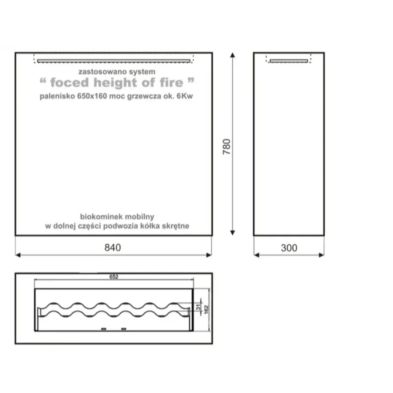Biokominek wyposażony jest w nowoczesny palnik, który tworzy wyjątkową, falującą linię ognia, nadając wnętrzu niepowtarzalny klimat i głębię. Dzięki wycięciu w kształcie fali płomień nie jest jednolity, lecz nabiera dynamiki i przestrzenności, stając się wyjątkowym elementem dekoracyjnym nowoczesnych wnętrz.