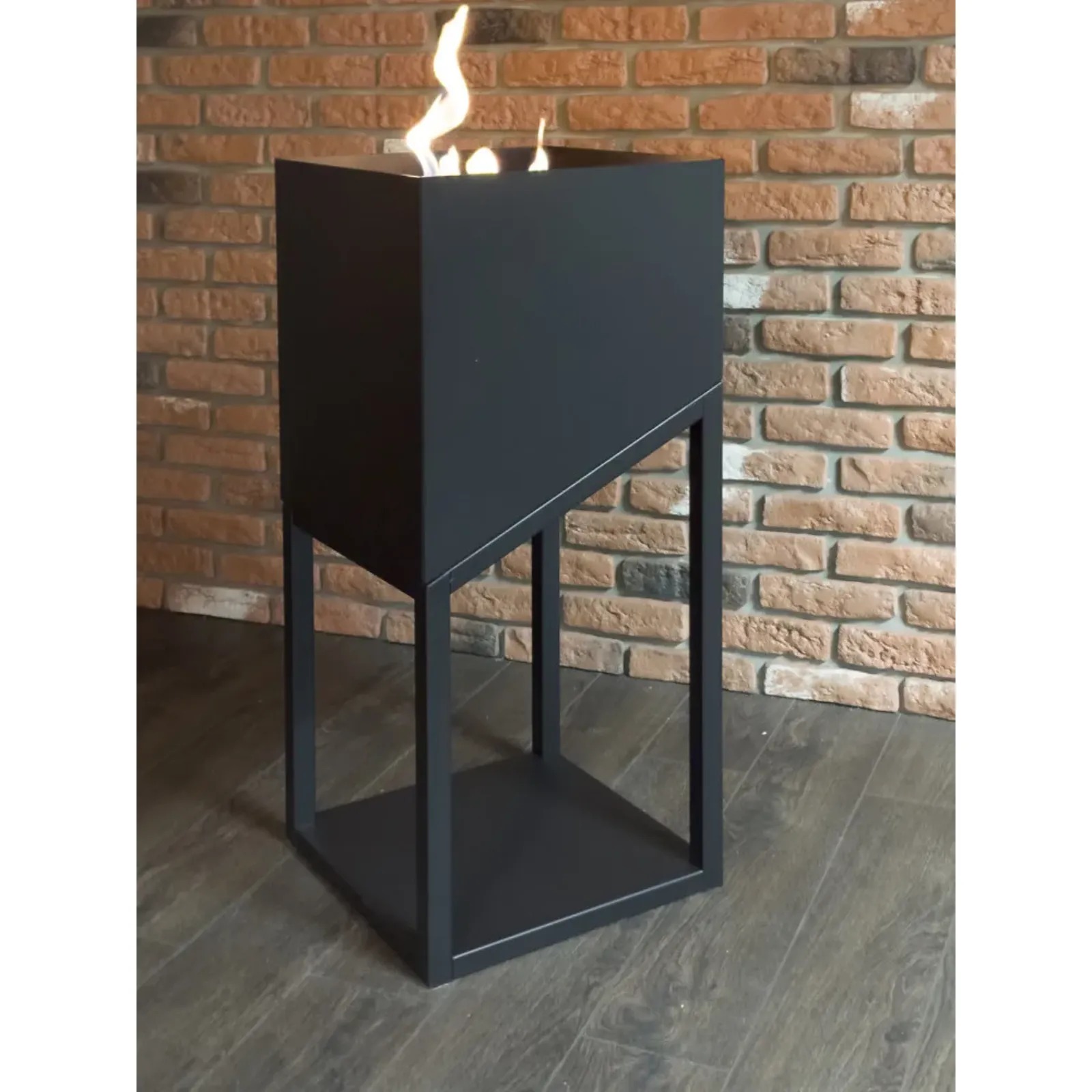 Połączenie prostej, geometrycznej ramy o asymetrycznym kształcie z łagodnymi elementami wewnątrz sprawia, że wygląd obudowy biokominka jest nowoczesny i minimalistyczny – idealny do wykorzystania w różnego rodzaju wnętrzach.