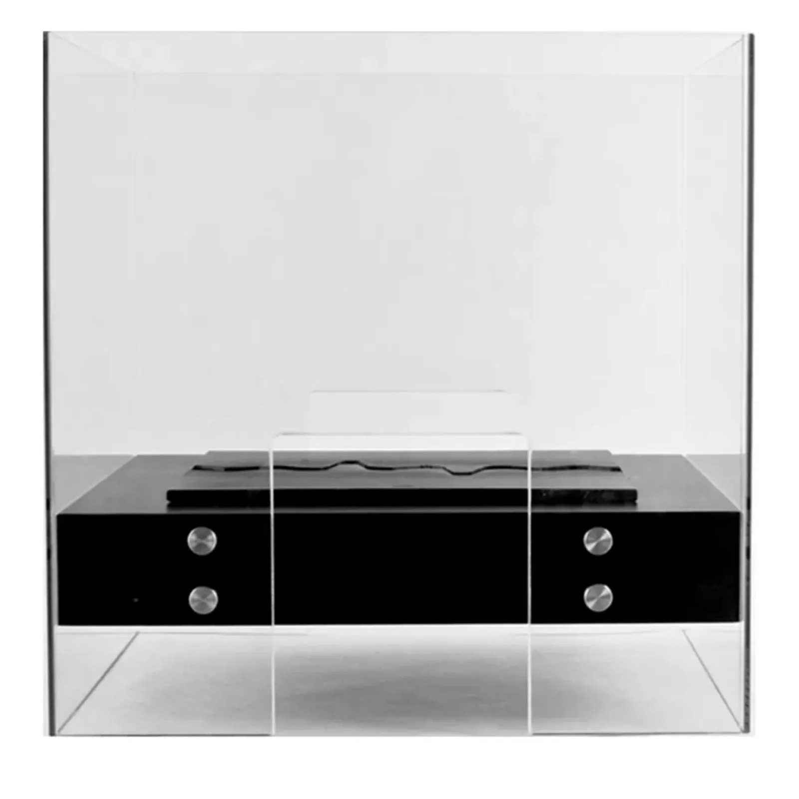 Biokominek Tanaga 4 wyróżnia się niezwykłymi możliwościami ekspozycyjnymi, które pozwalają w pełni wydobyć jego dekoracyjny charakter. Konstrukcja wykonana jest ze szkła hartowanego o grubości 6 mm, zamocowanego równolegle do czterech boków podstawy wkładu za pomocą trzpieni ze stali nierdzewnej. Biokominek najlepiej sprawdzi się ustawiony bezpośrednio na podłodze.