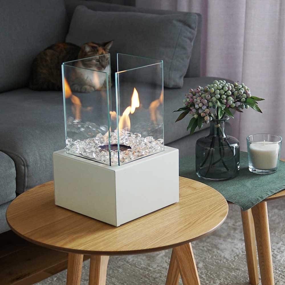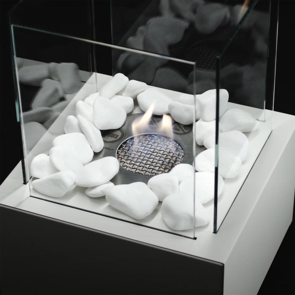 Tango 2 Biały to połączenie wysokiej jakości materiałów z nowoczesną, geometryczną formą, które dopełni każdy rodzaj wnętrza wyjątkowym, nienarzucającym się obrazem ognia i wypełni ciepłem od niego płynącym. Ze względu na niewielkie rozmiary i mobilny charakter z powodzeniem urządzenie można zabrać ze sobą w dowolne miejsce tworząc wokół wyjątkowy nastrój. Obserwacja ognia zaklętego w bezpiecznym palenisku, a otoczonego szybami hartowanymi, sprzyja relaksowi i wyciszeniu.
