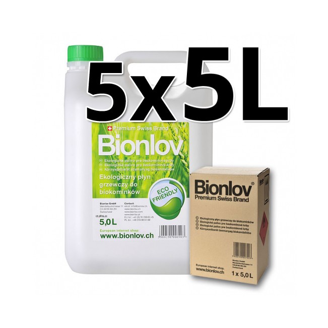 Bionlov® Premium to wysokiej jakości biologiczny płyn (paliwo) grzewczy do spalania w biokominkach i innych urządzeniach z odkrytym ogniem. Doskonały do ogrzewania pomieszczeń. Bionlov® Premium to odnawialne źródło energii. Produkowany jest na bazie najwyższej jakości alkoholu etylowego otrzymywanego w procesie destylacji surowców roślinnych. Dodatkowo jest uszlachetniony i oczyszczony na nowoczesnych urządzeniach molekularnych. Produktem spalania biopaliwa są para wodna i CO2 w ilościach bezpiecznych i porównywalnych do wydychanych przez człowieka.
