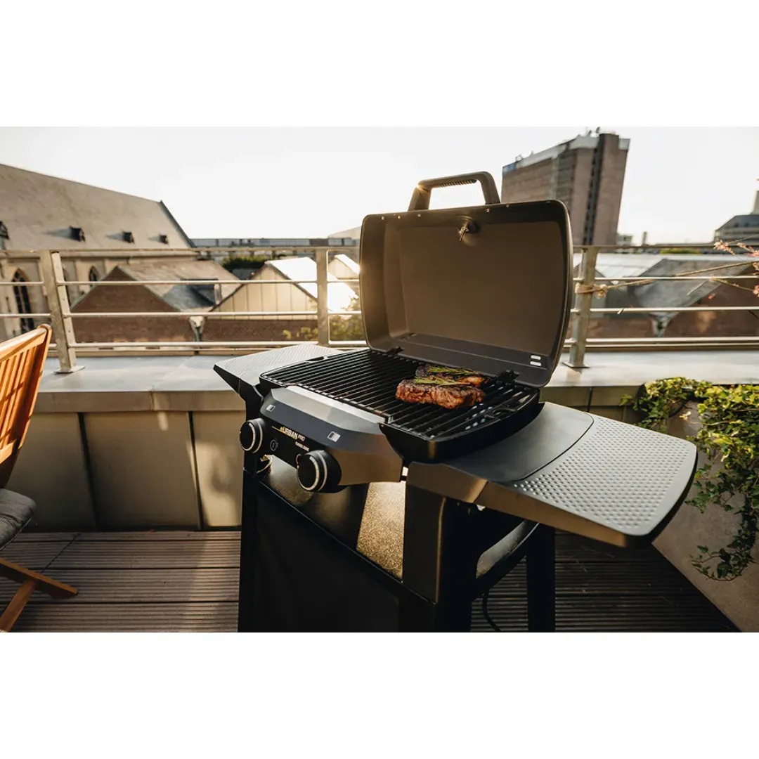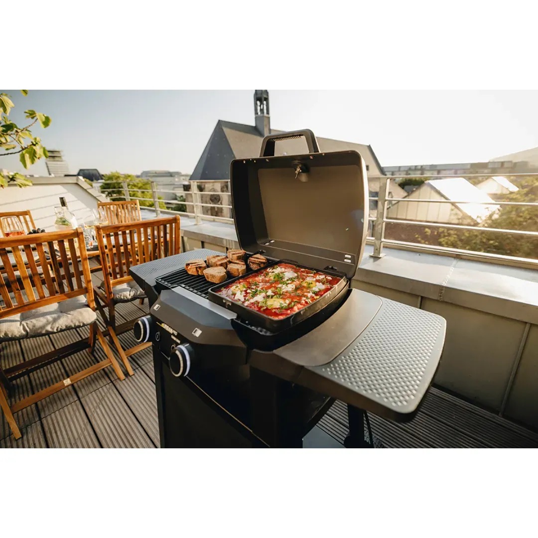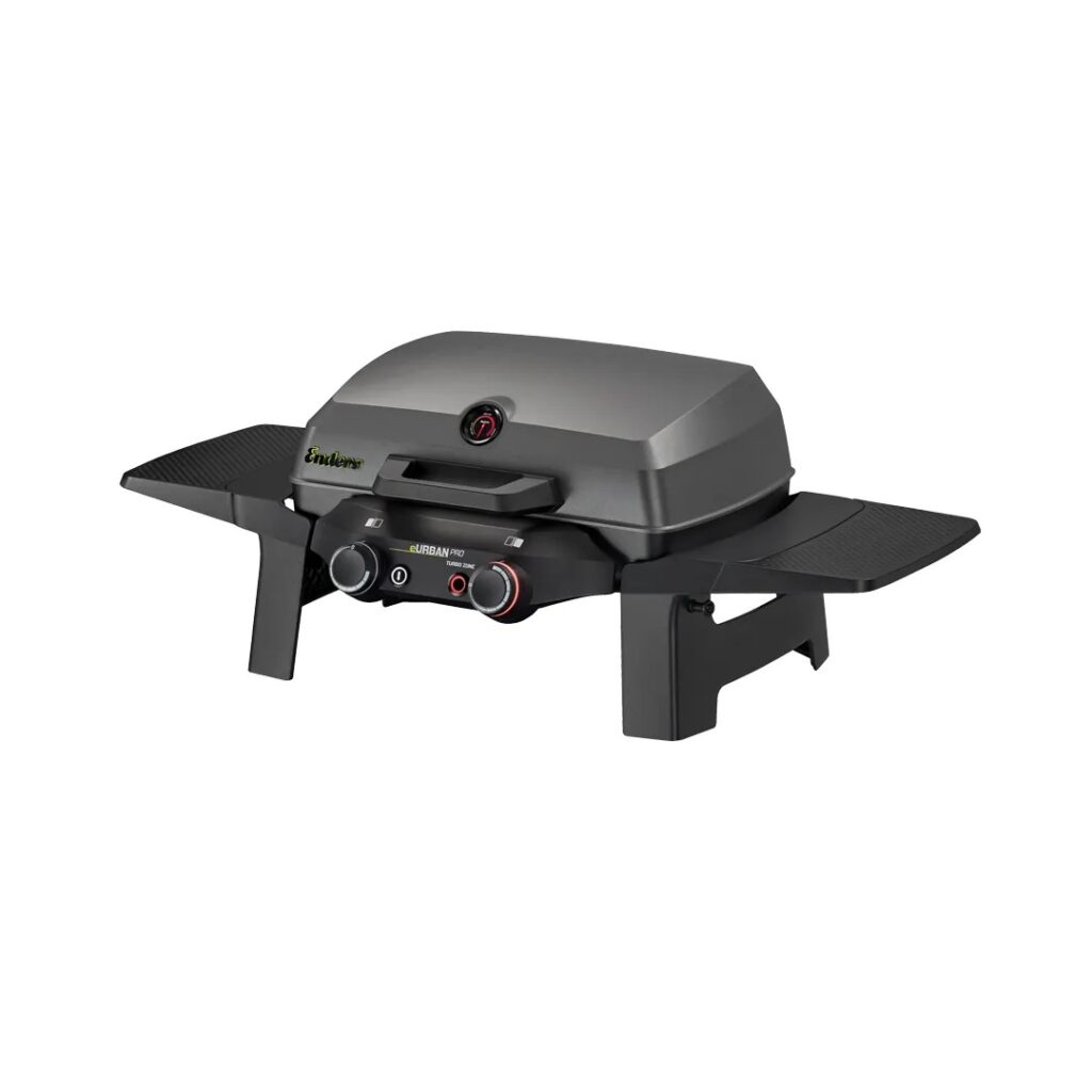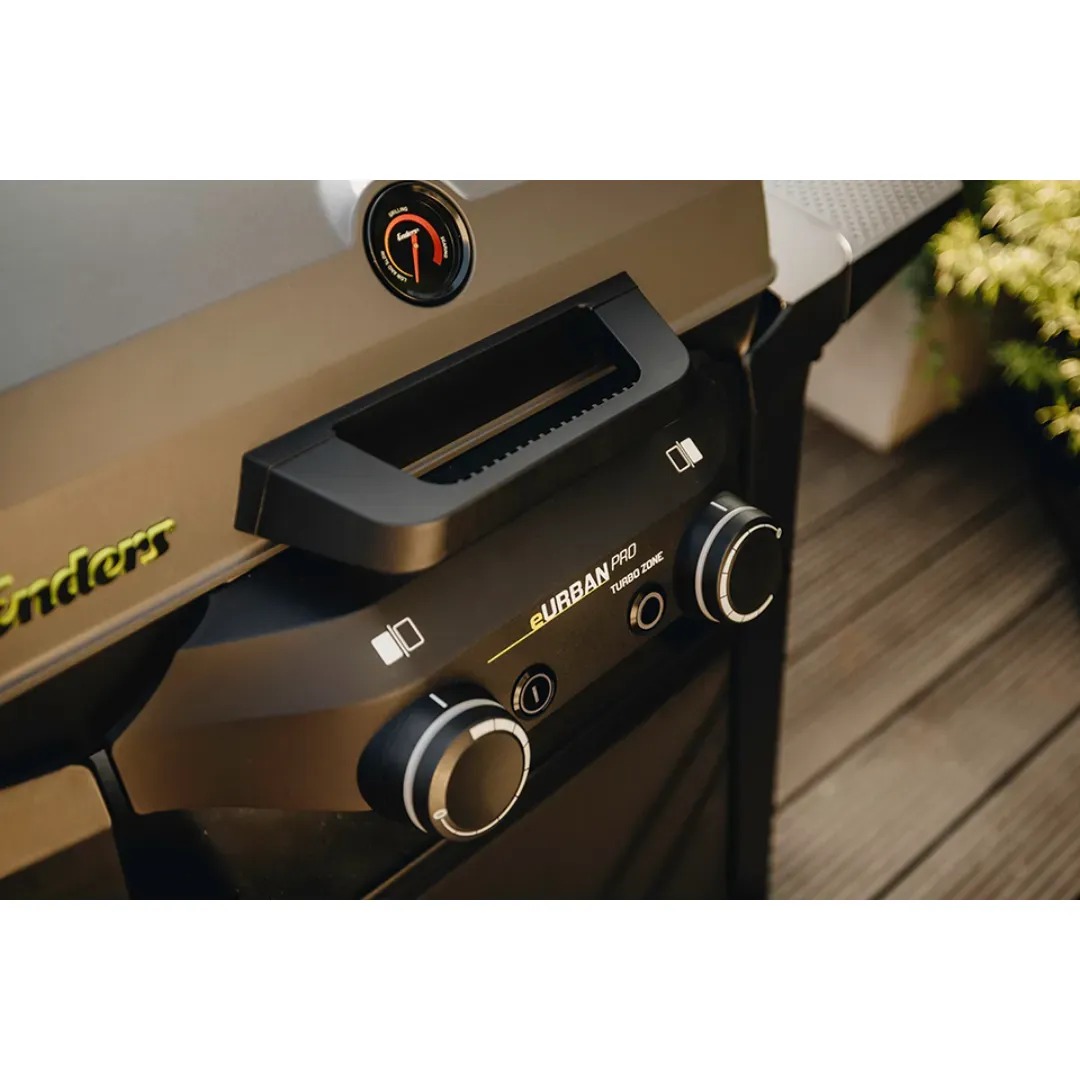 Enders eUrban Pro 2 Turbo to kompaktowe urządzenie stworzone z myślą o miejskim grillowaniu – sprawdzi się zarówno na balkonie, tarasie, jak i w niewielkim ogródku. Dwie niezależne strefy grzewcze z płynną regulacją temperatury umożliwiają grillowanie bezpośrednie oraz pośrednie, a emaliowany ruszt z żeliwa doskonale akumuluje ciepło i rozprowadza je równomiernie po całej powierzchni. Wbudowana technologia Turbo Zone pozwala w kilka chwil osiągnąć ekstremalnie wysoką temperaturę – wystarczy jedno naciśnięcie przycisku, by uzyskać idealne warunki do mocnego obsmażenia steka. Pokrywa oraz komora grilla wykonane z odlewanego aluminium skutecznie zatrzymują ciepło wewnątrz, co przekłada się na doskonałe efekty – czy to chrupiąca pizza, czy soczysty kawałek mięsa. Porządkowanie po grillowaniu ułatwia system SIMPLE CLEAN: wyjmowana misa reflektora i dedykowana szuflada na tłuszcz skracają czas sprzątania do minimum. Zestaw uzupełnia solidny stojak, który zapewnia ergonomiczną wysokość pracy i stabilność urządzenia podczas użytkowania.